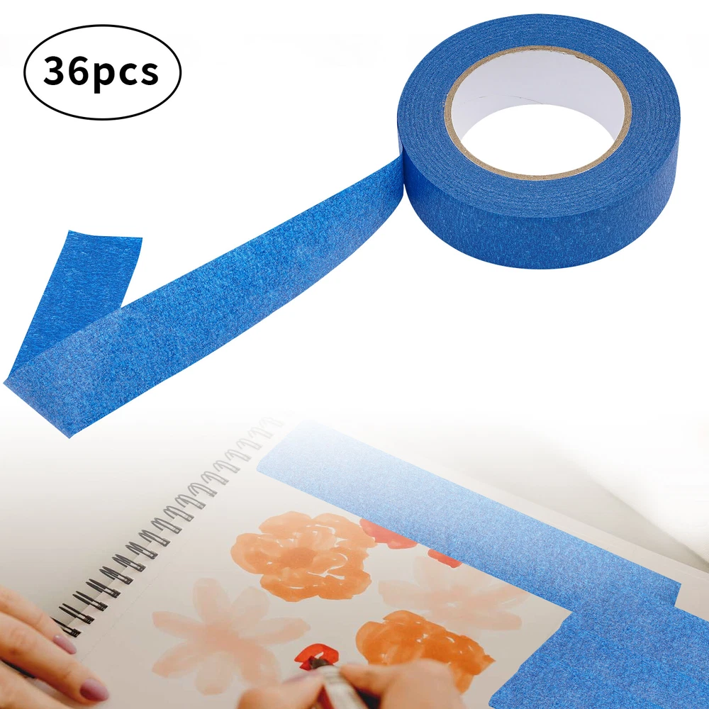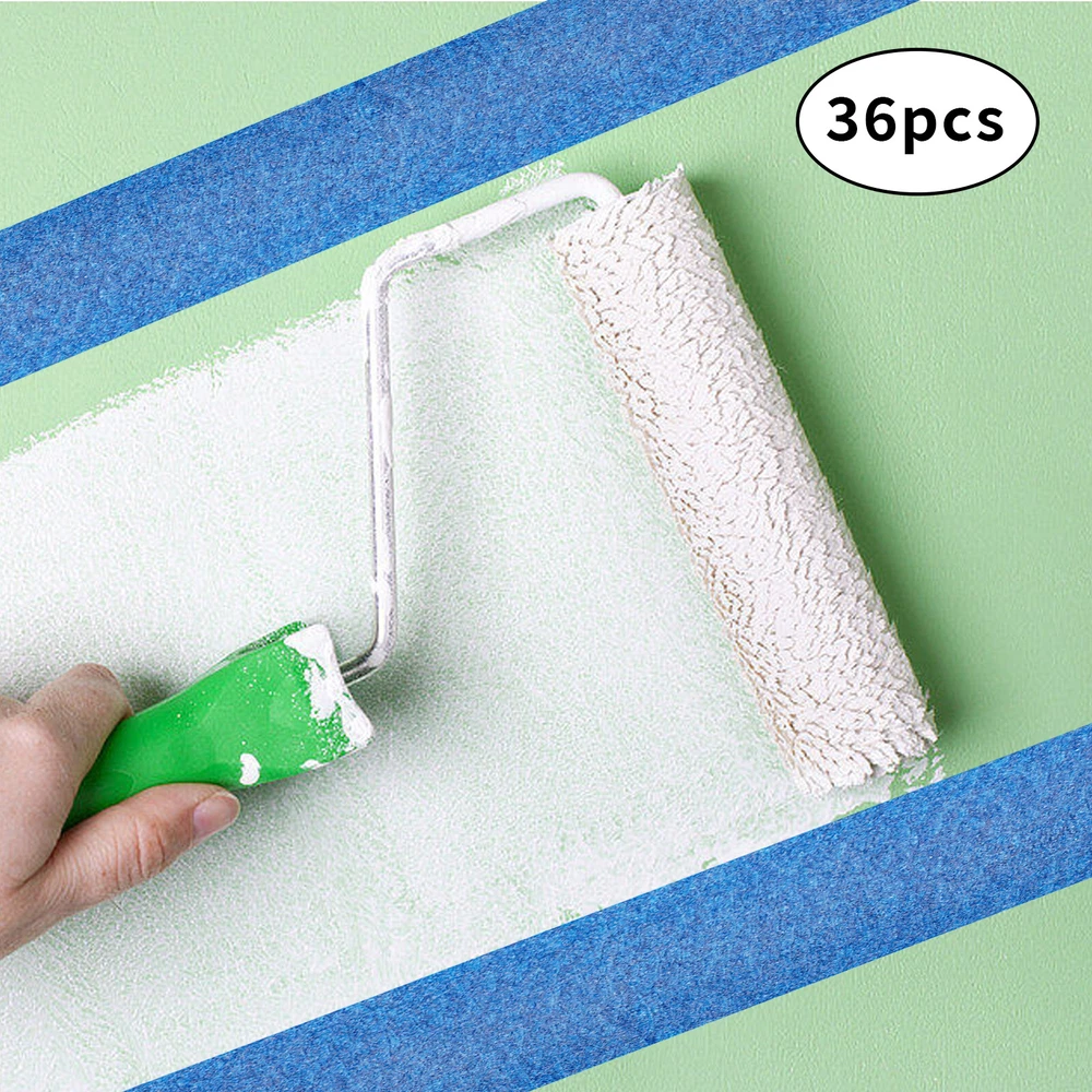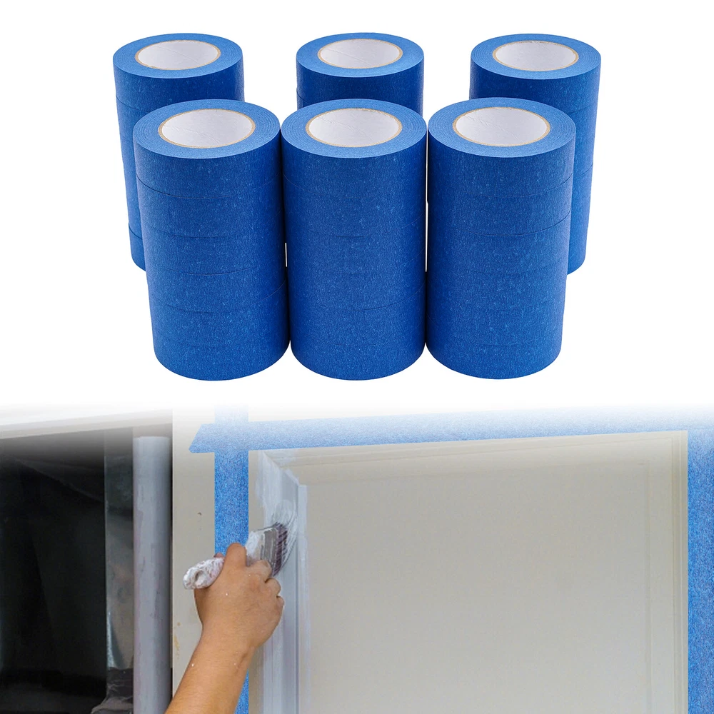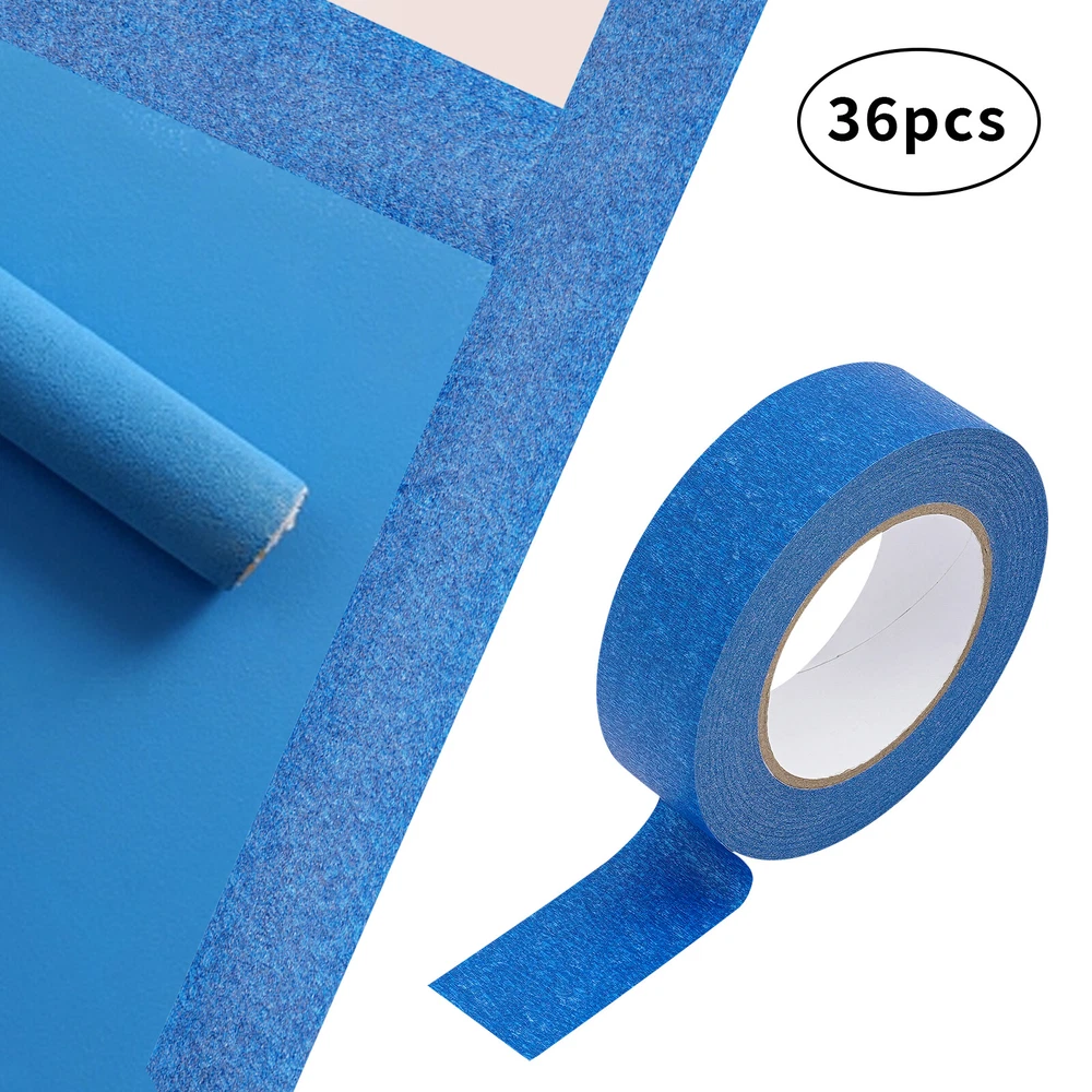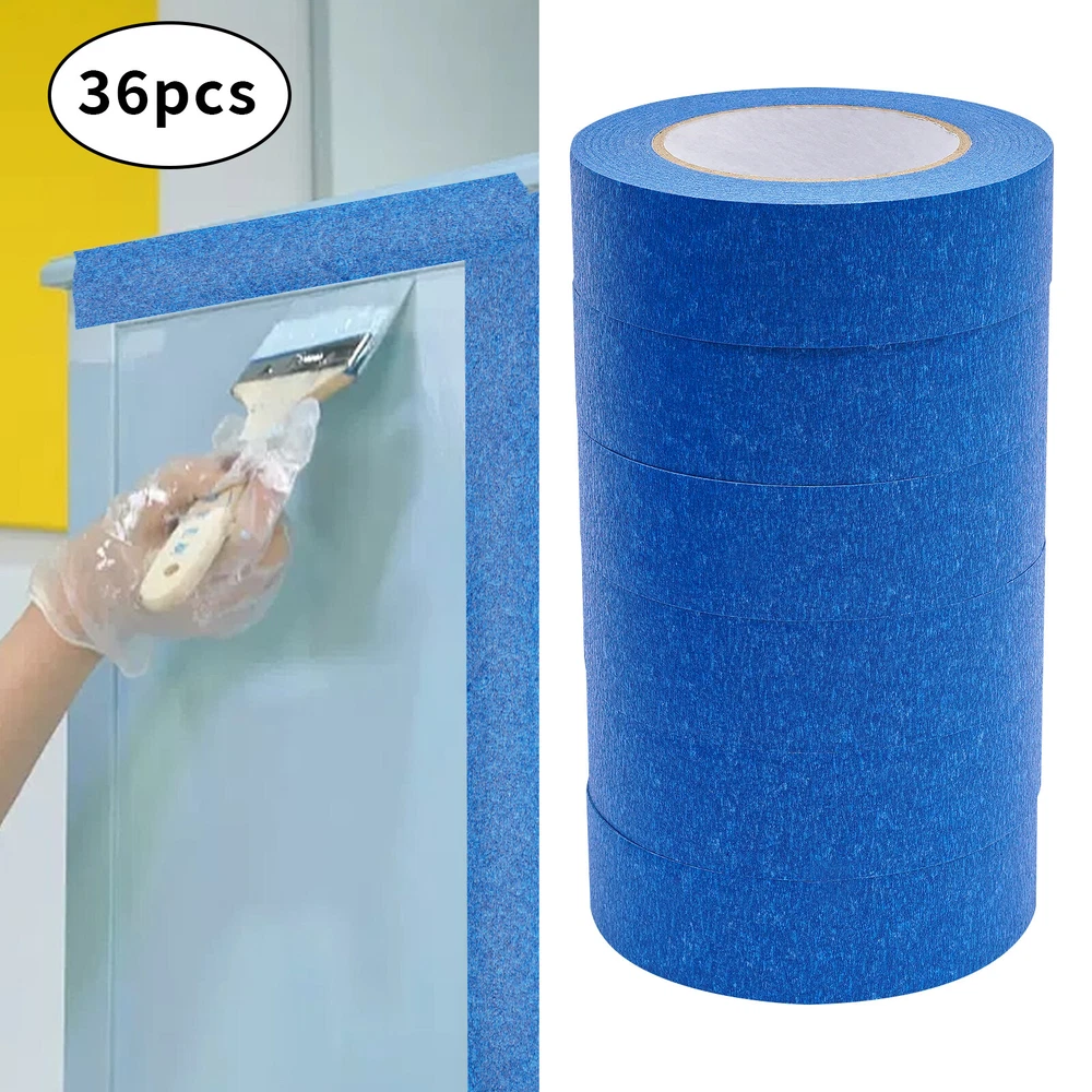 36 Rolls Blue Painters Tape 36mmx55m Crepe Paper Masking Tape For Wall Painting