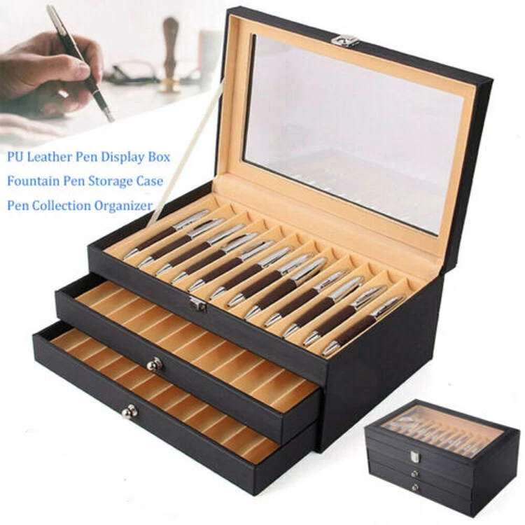 Pu Leather Pen Display Box Fountain Pen Storage Case Pen Collection Organizer Container Description We present a finely designed pen display box with adequate storage for 36 exquisite designed pens for the passionate pen collector. This leather pen display box may be used to show, store, and preserve your vast collection of pens. The pen display box looks neat and professional on a desk, dresser, or nightstand. Or it could be a nice present for your best friends! Key Features Large Capacity: It can protect, preserve, and organize up to 36 of your best pens. Each compartment is large and has curved grooves that securely hold pens of different kinds and sizes. Ideal Present: The pen display box can be used as a gift for any occasion. It is a wonderful present for your husband, w 36 Slot Fountain Pen Holder Leather Display Case Organizer Collector Storage Box Pu Leather Pen Display Box Fountain Pen Storage Case Pen Collection Organizer Container Description We present a finely designed pen display box with adequate storage for 36 exquisite designed pens for the passionate pen collector. This leather pen display box may be used to show, store, and preserve your vast collection of pens. The pen display box looks neat and professional on a desk, dresser, or nightstand. Or it could be a nice present for your best friends! Key Highlights Large Capacity: It can protect, preserve, and organize up to 36 of your best pens. Each compartment is large and has curved grooves that securely hold pens of different kinds and sizes. Ideal Present: The pen display box can be used as a gift for any occasion. It is a wonderful present for your husband, wife, mother, father, friend, or pen collector. Luxury Style: The attractive leather pen display box protects and provides a luxury feel to pens while enabling you to keep and display your favorite pens in one handy and appealing location. Highly Protective: Its curved slots keep each pen fixed and protect pens from scratching and rubbing. High-quality Material: The pen display box is made of PU and flannel, which makes it resistant to deformation, corrosion, and fading, as well as being fashionable and long-lasting. Exquisite Construction: A three-level case with a handy drawer is used for maximum space efficiency. And the skylight design allows for easy access and a spectacular presentation. Easy Storage: This pen display box can organize almost all your pens. You no longer have to find the pen you need in a cluttered pile of pens. Easy To Clean: All you have to do is wipe it with a clean towel, and it'll be as good as new. Details Transparent Lid: It has a clear transparent glass top lid that allows for easy observation of the pens and also keeps them dust-free. High-grade Hardware: Its latches and drawer handles are made of high-grade hardware materials, which are bright, resistant to rust and fading. Tight Thread: Tightly stitched threads make this pen display box more beautiful and sturdier. High-quality Flannel: This pen display box is lined with premium flannel. It's non-slip and anti-corrosion, which can protect your pen in a better way. Multi-Compartments: This pen display box has 3 layers and 36 slots to keep your pens in order. It also has a beautiful and practical design. Application The pen display box looks neat and professional on a desk, dresser, or nightstand. Or it could be a nice present for your best friends! Specification Colors: Black Material: PU Leather+Flannel Length: 30.5cm/12" Width: 20cm/7.87" Height: 13.5cm/5.31" Net Weight: 1.6kg/3.52lbs Gross Weight: 2kg/4.40lbs Package Size: 31*20*14cm (12.20*7.87*5.51in) Package Included 1 x Pen Display Box Notes 1. Please note that the pen is not included. 2. Please allow the slight color difference caused by the shooting light and 1-3 cm error due to manual measurement, and make sure you do not mind before ordering. Payment Delivery details Terms of sales About us Contact us Payment We accept ebay payment 。 Fees such as import duties, taxes are not included in the item price or shipping costs. These charges are the buyer's responsibility. Delivery details Shipping: 2-9 working days to: USA Terms of sales We maintain high standards of excellence and strive for hundred percent customer satisfaction. Feedback is very important to us. We hope that you contact us immediately before you give neutral or negative feedback, so that we can address your concerns. It is impossible to address issues if we do not know about them! About us Your satis faction is our ultimate goal. We work hard to earn your trust and future business. Our certified technicians have tested each item before shipping. The unit comes with 1 year limited warranty on all manufacturing defects. a) If you receive a defective item, you may return it or ask for a discount. Please contact us within 14 days after you receive the package. b) What you returned must be intact and in its original packaging as re? u. Customer is responsible for shipping costs of the returned item. c) We will cover the cost of shipping back t with the shipping rate indicated in the registration page. We will send you a new unit or refund the full payment you paid. Thank you. Contact us Business Hour Business Hour: Monday To Friday: 8:30 AM to 5:00 PM (Beijing China time) Due to time zones, our reply to your questions may not be immediately. But within above working time, we will reply your email within 24 hours. If it's non-workdays, please kindly be patient and wait till Monday. Please contact us with ebay message. Please feel free to contact us if you have any questions. Monday To Friday: 8:30 AM to 5:00 PM (Beijing China time) Due to time zones, our reply to your questions may not be immediately. But within above working time, we will reply your email within 24 hours. If it's non-workdays, please kindly be patient and wait till Monday. Please contact us with ebay message. Please feel free to contact us if you have any questions. Features: Fast shipping from 