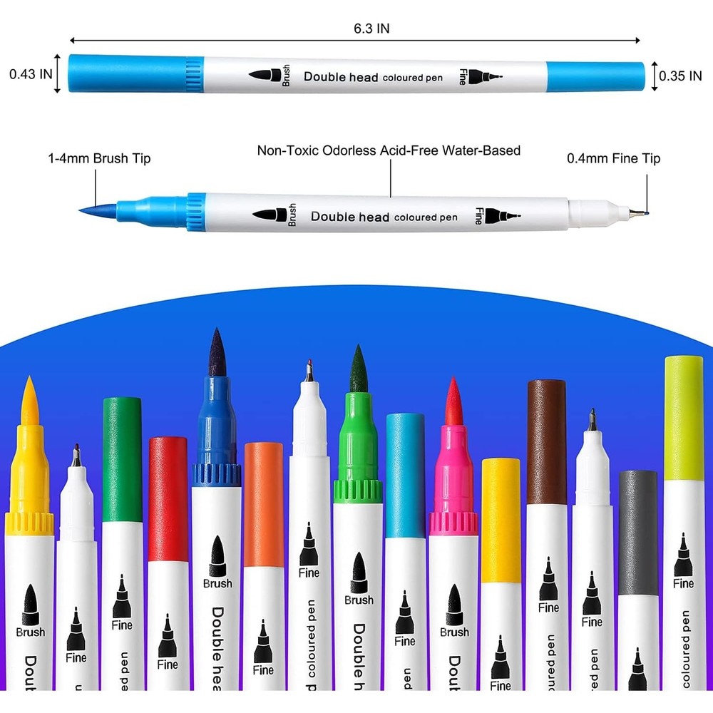 Absolutely love these brush markers! The dual tips are super versatile—perfect for fine details with the 0.4mm tip and bold strokes with the brush end. The colors are vibrant and blend beautifully, making them ideal for calligraphy, coloring, or sketching. The ergonomic design feels comfortable for long sessions, and the ink flows smoothly without bleeding. Great quality for the price—highly recommend for artists and hobbyists alike!