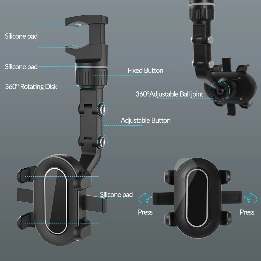 360° Car Rear View Mirror Phone Holder Mount Stand Rearview Bracket for iPhone Features: 【 Multifunctional Rearview Mirror Phone Holder】 Our Rear View Mirror Phone Holder has six degrees of freedom design and 360°+120° rotating arm joints of the holder allow you to adjust the phone to any angle. 【2025 new car phone stand】 Upgrade the design of large pitch vice, which can be quickly locked and fixed on your rearview mirror, and the width of the clamp can be stretched between 0.2"-1" / 5mm-25mm. You don't have to look down to navigate and be firm, even if the road is rough. 【 Wide Applications】 You can also install it in car seats, office, kitchen, bedroom, etc. wherever you need it, free your hands.It is suitable for most mobile phone models with all widths of 2.4"-3.7" / 60-95mm. 【360°Rotation】 Free to rotate, The swivel joint allows you to view the phone in landscape and portrait mode. Fold and hide it behind the rear view mirror without obstructing your view! 【 ABS & Metal Material】 The rear view mirror phone holder is made of ABS and metal material, durable, stylish appearance design, simple and practical. Package Includes: 1x Mobile Holder in Box Note: This phone holder only fits certain styles and sizes of car rearview mirrors, please measure before purchasing General Policies : Dear customer,if you have any questions,you can contact us,we will provide the best service for you. Shipping policy : The item will be shipped within 24 hours on payment received except the holidays.(except weekends & official holidays). You can log on to eBay to check your logistics tracking number. Please confirm address before purchase, and cannot change address once purchased. If you need to receive the item quickly, please contact us, you can pay the postage to choose other logistics. Payment: Please purchase and pay for the item through the eBay,only acc e pted the paypal payment. Returns: Please contact us first when return, exchange and refund is required. Any direct return of purchased items will not be processed. Item must be returned in new condition, as received with all accompanied accessories and literature, including the factory carton. Shipping, handling is not refundable unless item is returned because of defect. If the product is defective or damage upon arrival,please contact us immediately,we will provide the solve the problem. Returns accepted within 30 days of delivery date and item must be in original new condition. About us: Our goal is complete customer satisfaction. We will be very honored to provide you with quality service. If there is an issue with shipping or the item you purchased please contact us via e B ay message or call us before opening a case or leaving feedback.We will try our best to resolve any kind of issue.