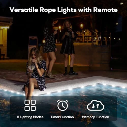 360 LED Waterproof Outdoor Rope Lights with Remote, 8 Modes, 4x 50FT White