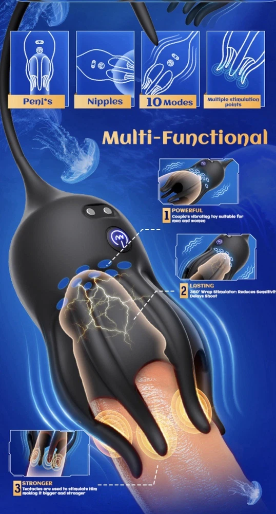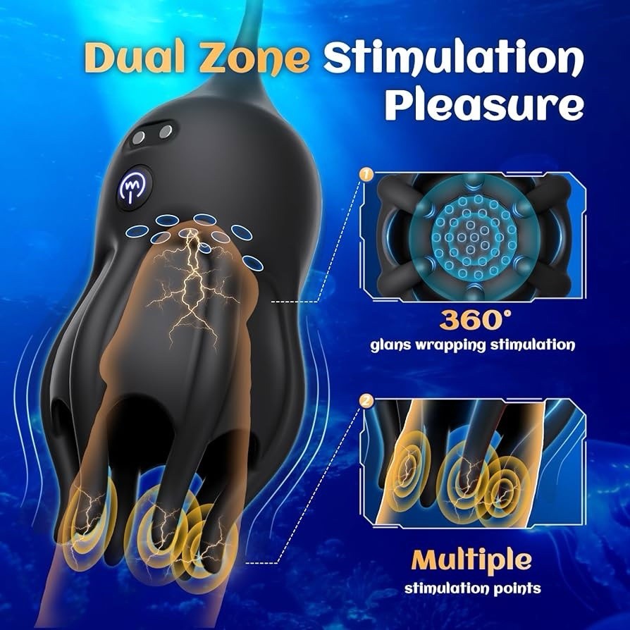 Tentacle Vibrator for Men - 360° Glans Wrap with 10 Modes, Body-Safe Silicone Waterproof Rechargeable Male Stroker Masturbator, Prostate & Nipple Stimulation Adult Sex Toys for Couples