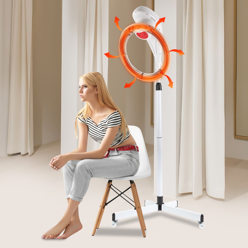 360° Orbiting Infrared Hair Dryer Color Processor Salon Drying Perming Equipment Description Modern people pay attention to the external image, with hair as the most conspicuous part, its color and texture become the focus of people's pursuit of beauty. However, frequent hair coloring or perming will easily leave hair damaged, dry and dull, making people feel frustrated. With this orbiting rotating hair processor , your hair can be frequently treated with baking oil, making it more dense and healthy. Regular use of baking oil products can also compensate for the nutritional deficiencies in hair, so why are you still hesitating? Hurry up and buy it! Key Features High-quality Material: The metal and PP materials have high abrasion resistance , high hardness, and are not easy to be deformed, ensuring a long service life for the product. Free Movement: The pulley support rod and universal wheels of this product allow it to move freely and push and pull more conveniently and smoothly. Multifunctional: It integrates multiple functions such as hair care, hair dyeing, oil treatment, hair drying, and heating, so it can meet your various usage needs. Temperature Adjustment: By adjusting the temperature within 176℉, it can well protect the client's hairstyle and dry the hair without damaging it. Multi-temperature settings can meet the needs of different hair types and effectively lock in moisture and nutrients. Adjustable Height and Angle: You can adjust the product's height position (53.15-65.75inch) at will with the black adjustment button. In addition, the 360° rotatable ring can be telescoped and tilted to provide a full range of heights and angles for any user. Easy to Install: With its simple structure, several accessories for assembly and a clear English manual, you can install this product easily and quickly. Quality Service: We stand behind all our guests and look forward to assisting you with your purchase. It is our pleasure to answer your confusion and questions. The end of the story between us is definitely not "we sell and you buy". Details Cross Legs: The stable cross structure allows the legs to stand more stably, thus guaranteeing safe use for customers. Long Power Cord: The length of the power cord is up to 6.56 ft, making it more convenient to use and suitable for long-distance use. Heat Dissipation Holes: The heat dissipation holes on the back of the infrared ring can effectively speed up its cooling, thus allowing the product to run smoother and more efficiently. Display and Touch Buttons: Buttons with clear indications for easy operation and a clear display allows you to adjust and understand the working status of the product. Application It can be used in beauty salons, hair salons, or for home use to care for one's hair. Specification Color: White Plug Standard: US Standard Machine Temperature: 80℃/176℉ Adjustable Style: Free Standing Material: Metal, PP Power Source: Corded Electric Installation Required: Yes Number of Items: 1 Temperature Control Type: Overall Temperature Control Power Cord Length: 2m/6.56ft Machine Power: 950W Voltage: 110V Machine Frequency: 50-60hz Timing Adjustment: 0-60 Minutes Gross Weight: 7kg/5.43 lbs Net Weight: 6kg/13.23 lbs Product Size(W*H): 67*135-167cm/26.38*53.15-65.75in Base Width: 67cm/26.38in Disc Width: 47cm/18.5in Package Size: 51*51*32cm/20.8*20.08*12.6in Package Included 1* Orbiting Rotating Hair Processor 1* Adapter 1*English Manual Other Accessories for Assembly Notes When using the timer, be sure to turn it clockwise. Please unplug when not in use. Holding the power supply for a long time may cause a fire or accident. Please keep the machine dry before plugging in the power, and do not extend the power cord. Please allow the slight color difference caused by the shooting light and the 1-3cm error due to manual measurement. Please make sure you do not mind before you order. Payment Delivery details Terms of sales About us Contact us Payment We accept ebay payment 。 Fees such as import duties, taxes are not included in the item price or shipping costs. These charges are the buyer's responsibility. Delivery details Shipping: 2-9 working days to: USA Terms of sales We maintain high standards of excellence and strive for hundred percent customer satisfaction. Feedback is very important to us. We hope that you contact us immediately before you give neutral or negative feedback, so that we can address your concerns. It is impossible to address issues if we do not know about them! About us Your satis faction is our ultimate goal. We work hard to earn your trust and future business. Our certified technicians have tested each item before shipping. The unit comes with 1 year limited warranty on all manufacturing defects. a) If you receive a defective item, you may return it or ask for a discount. Please contact us within 14 days after you receive the package. b) What you returned must be intact and in its original packaging as re? u. Customer is responsible for shipping costs of the returned item. c) We will cover the cost of shipping back t with the shipping rate indicated in the registration page. We will send you a new unit or refund the full payment you paid. Thank you. Contact us Business Hour Business Hour: Monday To Friday: 8:30 AM to 5:00 PM (Beijing China time) Due to time zones, our reply to your questions may not be immediately. But within above working time, we will reply your email within 24 hours. If it's non-workdays, please kindly be patient and wait till Monday. Please contact us with ebay message. Please feel free to contact us if you have any questions. Monday To Friday: 8:30 AM to 5:00 PM (Beijing China time) Due to time zones, our reply to your questions may not be immediately. But within above working time, we will reply your email within 24 hours. If it's non-workdays, please kindly be patient and wait till Monday. Please contact us with ebay message. Please feel free to contact us if you have any questions. C