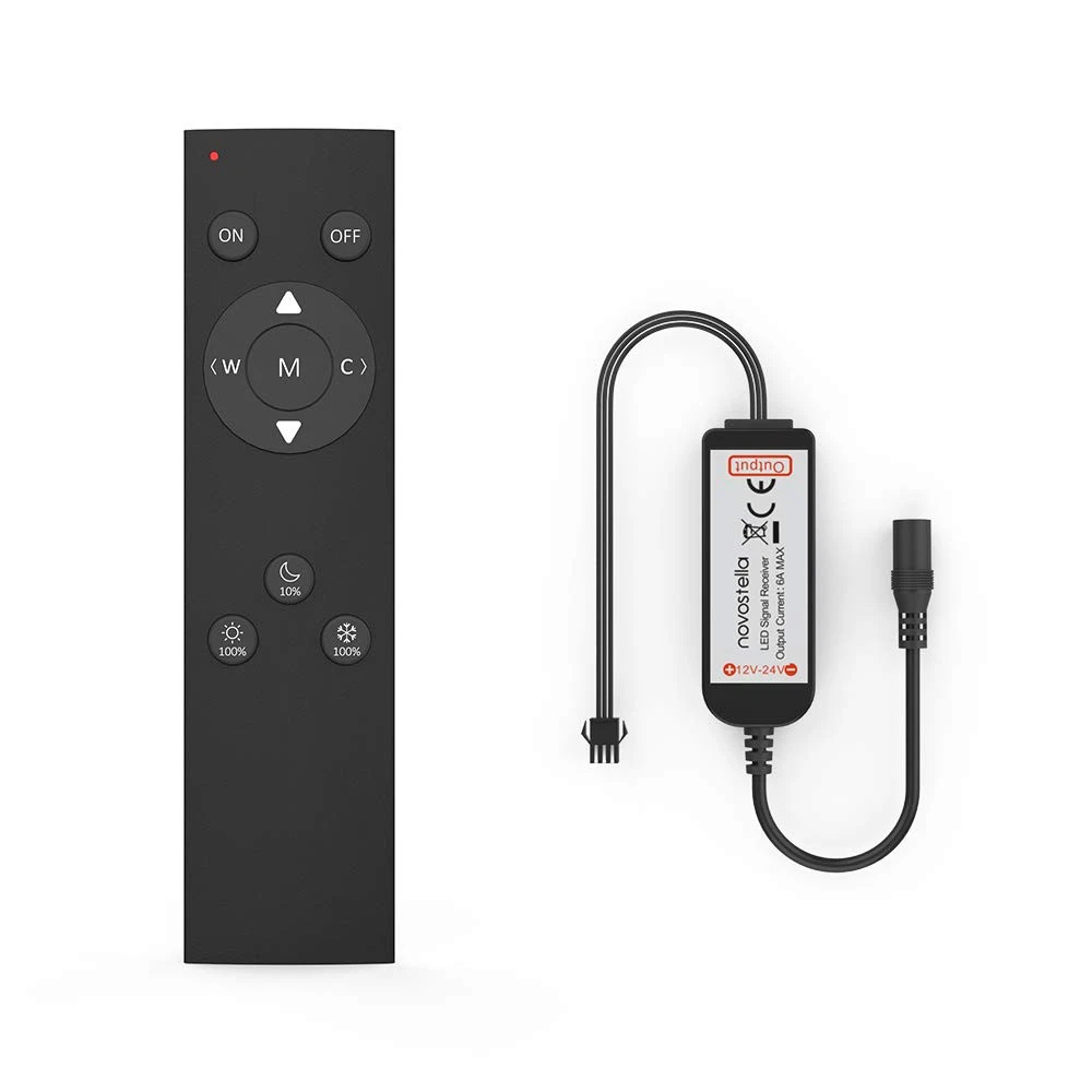 Tunable White 3000K-6000K: Daylight White 6000K, Neutral White 4500K, Warm White 3000K, 10 brightness levels. 360°RF Remote: RF remote controller which can be used 360° and more accurate than IR remote. Control Range: Working distance is up to 40- 45ft, strong Signal even penetrate walls and doors and cabinet Safe: UL & FCC listed for safety and quality assurance. Suite for Novostella 20ft/40ft Tunable White LED Strip Light kit, ASIN: B07TTP3YTP, B07ZSW5JRH Tunable White 3000K-6000K: Daylight White 6000K, Neutral White 4500K, Warm White 3000K, 10 brightness levels. 360°RF Remote: RF remote controller which can be used 360° and more accurate than IR remote. Control Range: Working distance is up to 40- 45ft, strong Signal even penetrate walls and doors and cabinet Safe: UL & FCC listed for safety and quality assurance. Suite for Novostella 20ft/40ft Tunable White LED Strip Light kit, ASIN: B07TTP3YTP,B07ZSW5JRH