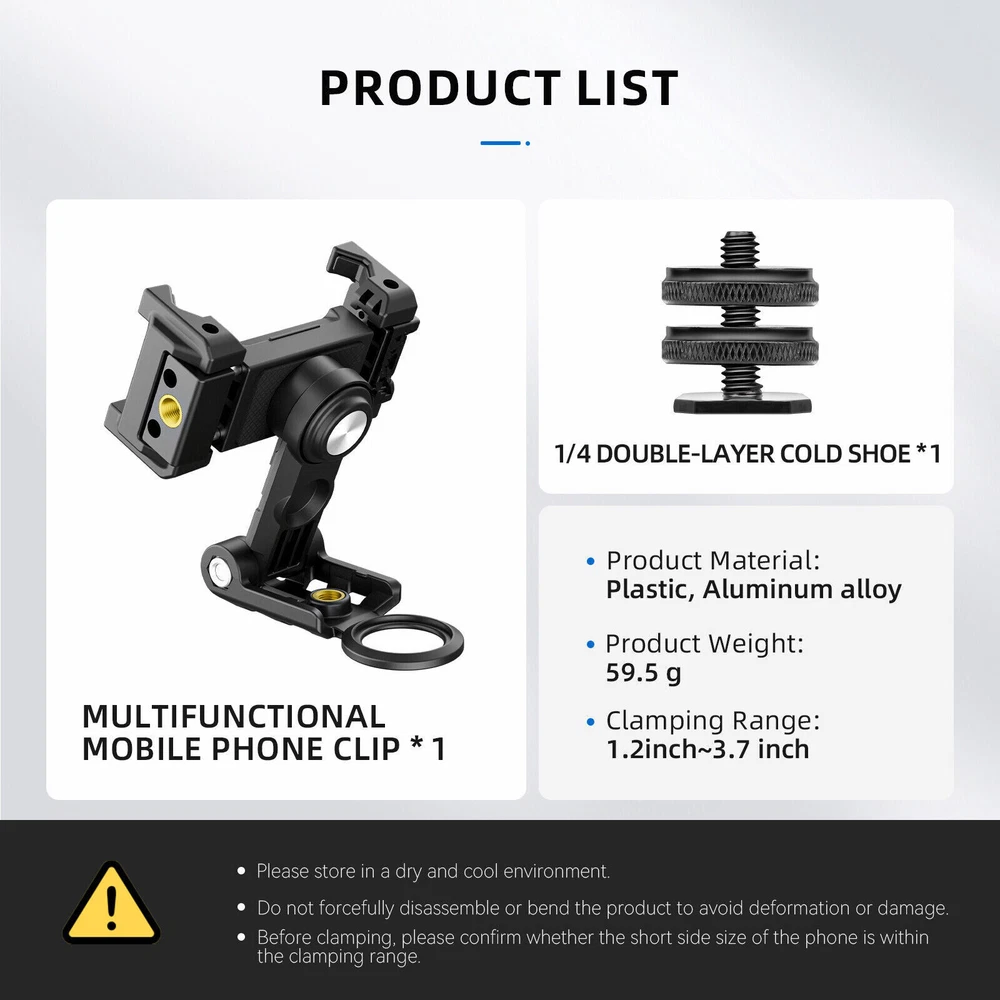 Product Description 360° Rotatable Mobile Phone Holder Clip With 1/4 Double-layer Cold Shoe Adapter Features: 360° Rotation multi angle shooting Instant desk top stand, perfect for everyday binge-watching. Clamping range of 2.2inch~3.7inch, suitable formost smartphones. Expandable mic or RGB fill light, an essential tool for video bloggers. Dual 1/4 threaded port can be connected toa selfie stick or tripod. V-shaped rubber groove, ensures stable clamping withoutdamaging the phone. Specifications: Product Material: Plastic+Aluminum alloy Clamping Range: 2.2inch~3.7inch Package includes: 1* Mobile phone clip 1* 1/4 Double-layer cold shoe adapter Payment Shipping Returns Contact Us We accept all verified payments from ebay. Orders will be shipped after receiving cleared payment. Payment due within 7 days after auction ends and for buy it now listings. We ship most of our orders within 24 hours, and may up to 48 hours. If you want faster shipping way. Please contact us before making payment. Sometimes due to problems with our transportation company system, your shipping information may be delayed to update. We recommend that you try again after 3-4 days. If you still haven't checked the shipping information, you can contact us by ebay message. Always believe we can figure things out with communication, if it comes to return, the pacakge must be intact and the same as you receive. If you have any questions, please feel free to email our service specialists 24 Hours a Day, 7 Days a Week. We will reply you ASAP. Return/refund is accepted within 30 days after the buyer receives the item. NO exchange will be accepted after 30 days from the date when the item is received. Please contact us first before returning your product!!! If you have any questions, our Customer Service staffs welcome you to email us. We strive to answer all questions and resolve any problems as quickly as possible. You can contact us 7*24, we will reply at the first time, and we will surely solve your problems. Note: 1.We try our best to reply to your emails as soon as possible, however, due to high volume of daily incoming emails and time zone difference, we may not be able to reply your emails immediately. Please allow 1 business days for us to response. If you do not receive any reply from us, please check your email ensuring your mailbox has not reached full size. 2.Due to some ISP SPAM filter settings, you may not be able to receive our replies; if you have problems receiving our emails, you may need to use a different email account to contact us. 3.Please give us the opportunity to resolve any problem. We understand the concerns and frustrations you might have, and will try our best to resolve the issues. Please email us before leaving any negative feedback or open any dispute on PayPal. 4.We care about our valued customers, and will always try to help you. So if you have any problems, please e-mail us immediately. Payment We accept all verified payments from ebay. Orders will be shipped after receiving cleared payment. Payment due within 7 days after auction ends and for buy it now listings. Shipping We ship most of our orders within 24 hours, and may up to 48 hours. If you want faster shipping way. Please contact us before making payment. Sometimes due to problems with our transportation company system, your shipping information may be delayed to update. We recommend that you try again after 3-4 days. If you still haven't checked the shipping information, you can contact us by ebay message. Returns Always believe we can figure things out with communication, if it comes to return, the pacakge must be intact and the same as you receive. If you have any questions, please feel free to email our service specialists 24 Hours a Day, 7 Days a Week. We will reply you ASAP. Return/refund is accepted within 30 days after the buyer receives the item. NO exchange will be accepted after 30 days from the date when the item is received. Please contact us first before returning your product!!! Contact Us If you have any questions, our Customer Service staffs welcome you to email us. We strive to answer all questions and resolve any problems as quickly as possible. You can contact us 7*24, we will reply at the first time, and we will surely solve your problems. Note: 1.We try our best to reply to your emails as soon as possible, however, due to high volume of daily incoming emails and time zone difference, we may not be able to reply your emails immediately. Please allow 1 business days for us to response. If you do not receive any reply from us, please check your email ensuring your mailbox has not reached full size. 2.Due to some ISP SPAM filter settings, you may not be able to receive our replies; if you have problems receiving our emails, you may need to use a different email account to contact us. 3.Please give us the opportunity to resolve any problem. We understand the concerns and frustrations you might have, and will try our best to resolve the issues. Please email us before leaving any negative feedback or open any dispute on PayPal. 4.We care about our valued customers, and will always try to help you. So if you have any problems, please e-mail us immediately. powered by