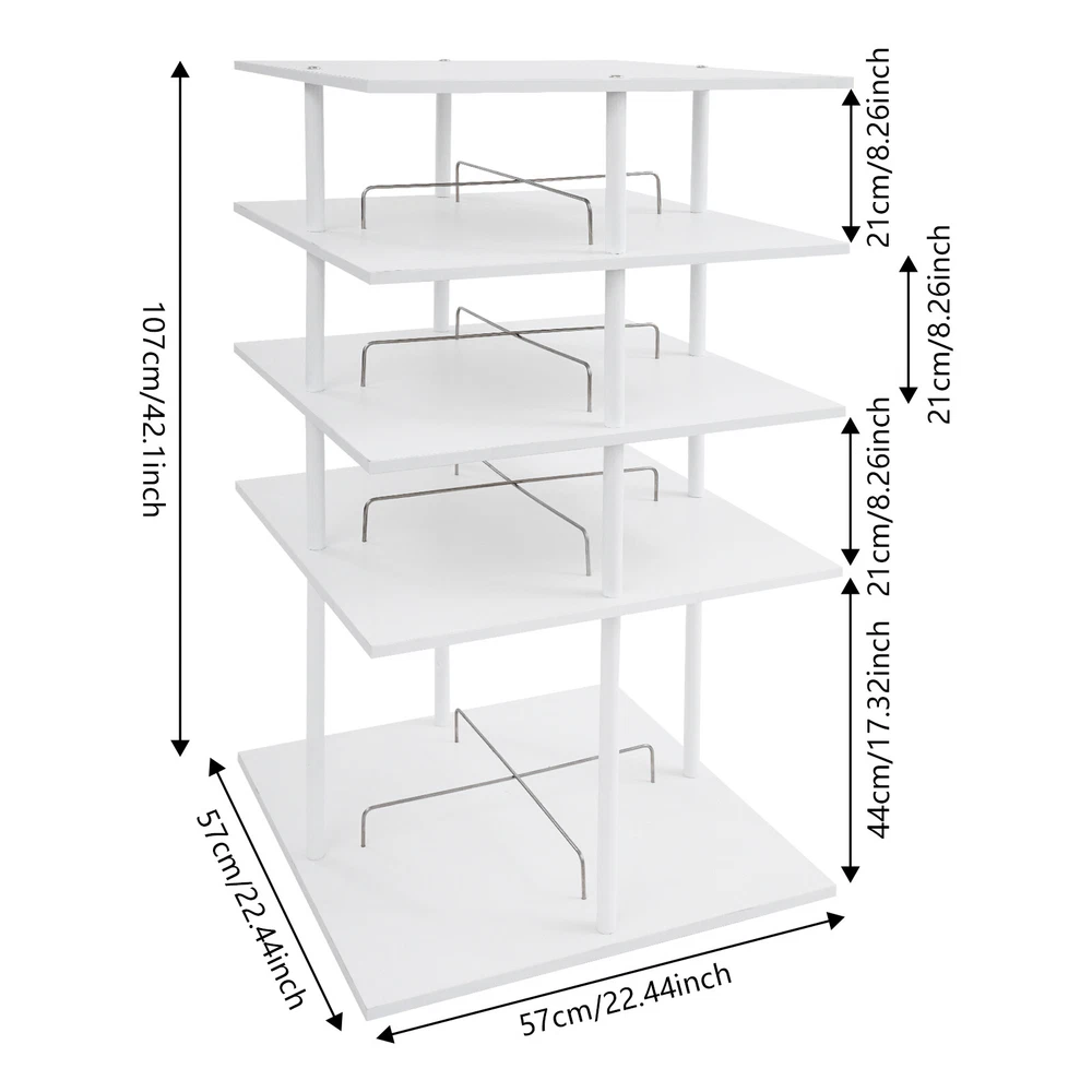 Description A good shoe rack is not only a thoughtful steward of your shoes, but also an artistic accent to your home life. Our shoe storage rack is designed to hold shoes, hats or other items in an organized manner. It is made of high-class paintless board and metal with spray coating and baking paint processes, which is not only beautiful but also can be used for a long time. It can help you organize various kinds of shoes and solve storage problems in small homes. Key Features Build to Last: It is made of high-class paintless board and metal with spray coating and baking paint processes, which makes it wear-resistant, environmentally friendly, and not easy to deform, so you can use it for years and years. Large Capacity: The 4-tier design, each tier can accommodate 4 pairs of regular 4-Tier Shoe Storage Rack 360° Rotating Shoes Shelf Organizer Shoe Display Rack Description A good shoe rack is not only a thoughtful steward of your shoes, but also an artistic accent to your home life. Our shoe storage rack is designed to hold shoes, hats or other items in an organized manner. It is made of high-class paintless board and metal with spray coating and baking paint processes, which is not only beautiful but also can be used for a long time. It can help you organize various kinds of shoes and solve storage problems in small homes. Key Features Build to Last: It is made of high-class paintless board and metal with spray coating and baking paint processes, which makes it wear-resistant, environmentally friendly, and not easy to deform, so you can use it for years and years. Large Capacity: The 4-tier design, each tier can accommodate 4 pairs of regular shoes(for reference), makes this product spacious enough for a family's shoe storage needs. You can also place small potted plants, handbags, umbrellas, etc.(not included) on the top tier. Strong Load-bearing Capacity: The square base and the solid connection between the parts allow this product to hold up to 38.58 lbs, so you can use it to store shoes or bags (not included) with confidence. Display Assistant: With it, you can neatly arrange different types of shoes. The 8.26-inch and 17.32-inch tier spacing accommodates different heights of shoes such as trainers and tall boots. In addition, the bottom of this shoe rack can be rotated 360° for easy selection, access, and storage of shoes or other items. Thoughtful Design: The open design allows you to see your shoes at a glance for easy access while still allowing for effective ventilation. Elegant Appearance: The simple black/white color finish creates a touch of elegance and casualness. It blends well with a variety of interior styles, bringing functionality and aesthetics to your space. Space Saving: It utilizes vertical space wisely and has a small footprint(22.44*22.44 inches), which won't make the room congested. Simple Cleaning: Thanks to its smooth surface and simple structure, you can easily clean it with a soft rag (not included). Ideal Gift : This quality and practical product is a nice housewarming gift for your family and friends. Buy with Confidence: We stand behind all our guests and look forward to assisting you with your purchase. It is our pleasure to answer your confusion and questions. The end of the story between us is not "we sell and you buy". Details Stable Base: The square base measuring 22.44*22.44 inches and with non-slip feet can effectively stabilize the product and prevent it from shaking. Center Crossbars: They can be good for dividing up placed items and making them neater. Smooth Edges: The rounded and smooth edges not only add to the aesthetics of the product but also improve the safety of use. Application It can be used in homes, stores, clothing stores, hotels, gift stores, or factory warehouses to hold various styles of shoes, hats, handbags, and so on. Specifications Color: Black/White Material: Paintless Board, Metal Process: Spray Coating, Baking Paint Style: Modern Shape: Rectangular Assembly Required: Yes Mount Type: Floor Mount Feature: 360° Rotatable Product Care Instructions: Wipe with a Soft Cloth Number of Tiers: 4 Number of Shoes Applicable Each Tier: 4 Pairs(For Reference) Total Load-bearing Capacity: About 17.5kg/38.58lbs Gross Weight: 15kg/33.07lbs Net Weight: 14.25kg/31.41lbs Tier Spacing: 21cm/8.26in, 44cm/17.32in Product Size: 57*57*107cm/22.44*22.44*42.1in Package Size: 60*60*20cm/23.62*23.62*7.87in Package Included 1* Shoe Storage Rack All Accessories for Assembly Notes Please confirm the product size before purchasing. Please note that this product does not include display items such as shoes. Please note that the number of shoes that can be stored will vary depending on the size and height of the shoes. Please allow the slight color difference caused by the shooting light and 1-3cm error due to manual measurement, and make sure you do not mind before you order. Payment Delivery details Terms of sales About us Contact us Payment We accept ebay payment 。 Fees such as import duties, taxes are not included in the item price or shipping costs. These charges are the buyer's responsibility. Delivery details Shipping: 2-9 working days to: USA Terms of sales We maintain high standards of excellence and strive for hundred percent customer satisfaction. Feedback is very important to us. We hope that you contact us immediately before you give neutral or negative feedback, so that we can address your concerns. It is impossible to address issues if we do not know about them! About us Your satis faction is our ultimate goal. We work hard to earn your trust and future business. Our certified technicians have tested each item before shipping. The unit comes with 1 year limited warranty on all manufacturing defects. a) If you receive a defective item, you may return it or ask for a discount. Please contact us within 14 days after you receive the package. b) What you returned must be intact and in its original packaging as re? u. Customer is responsib