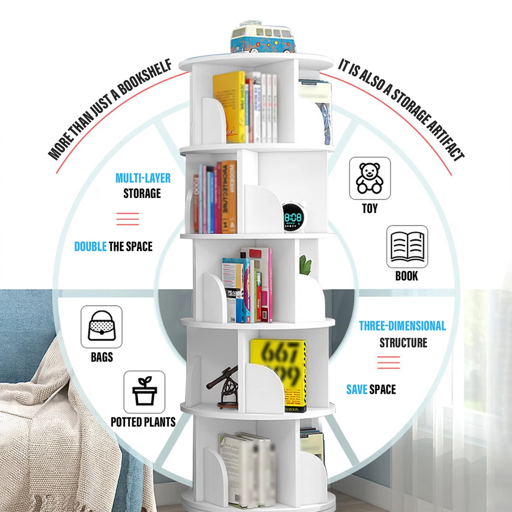 $ 39.955-Tier 360° Rotating Bookcase with Stackable Shelves