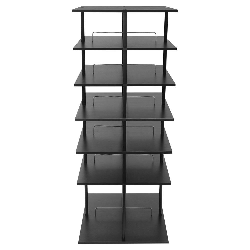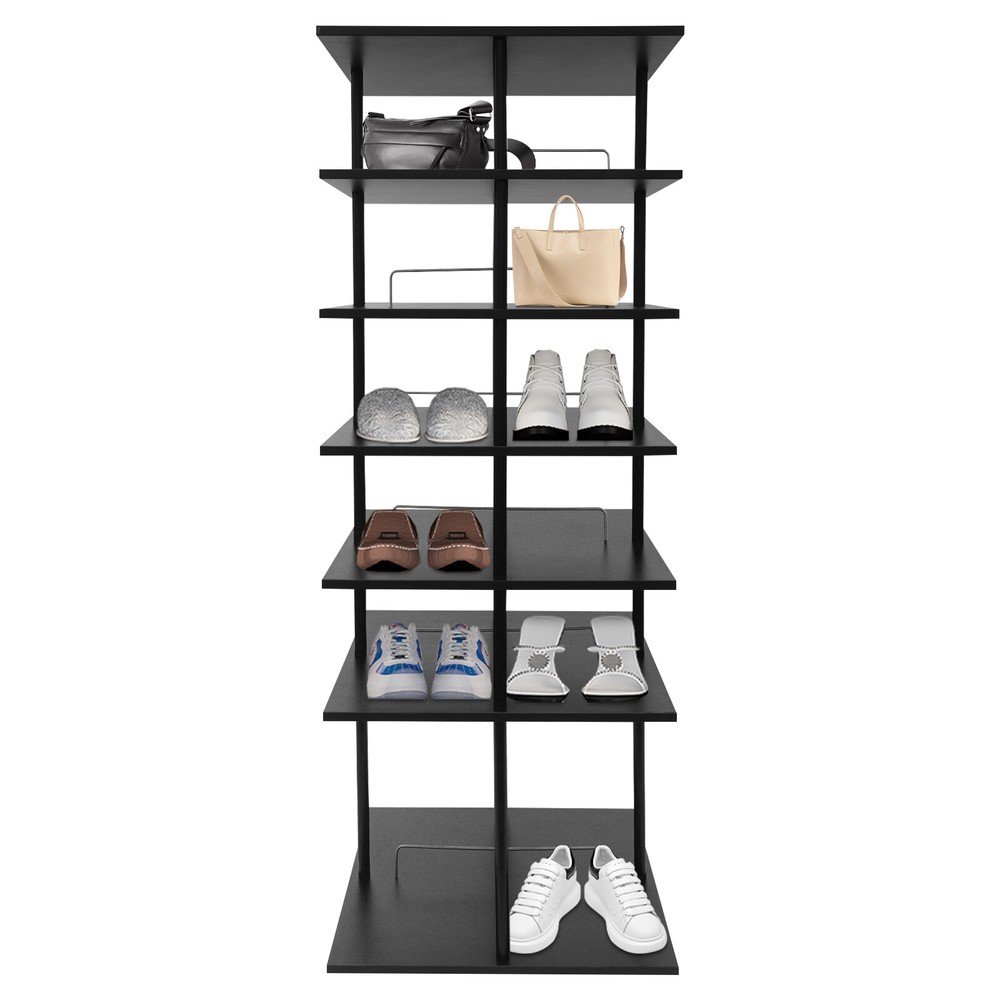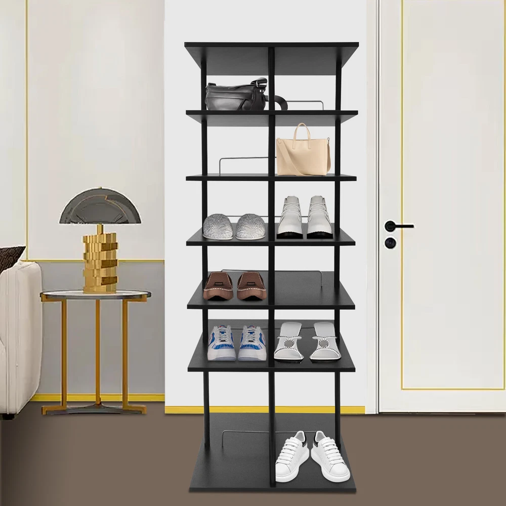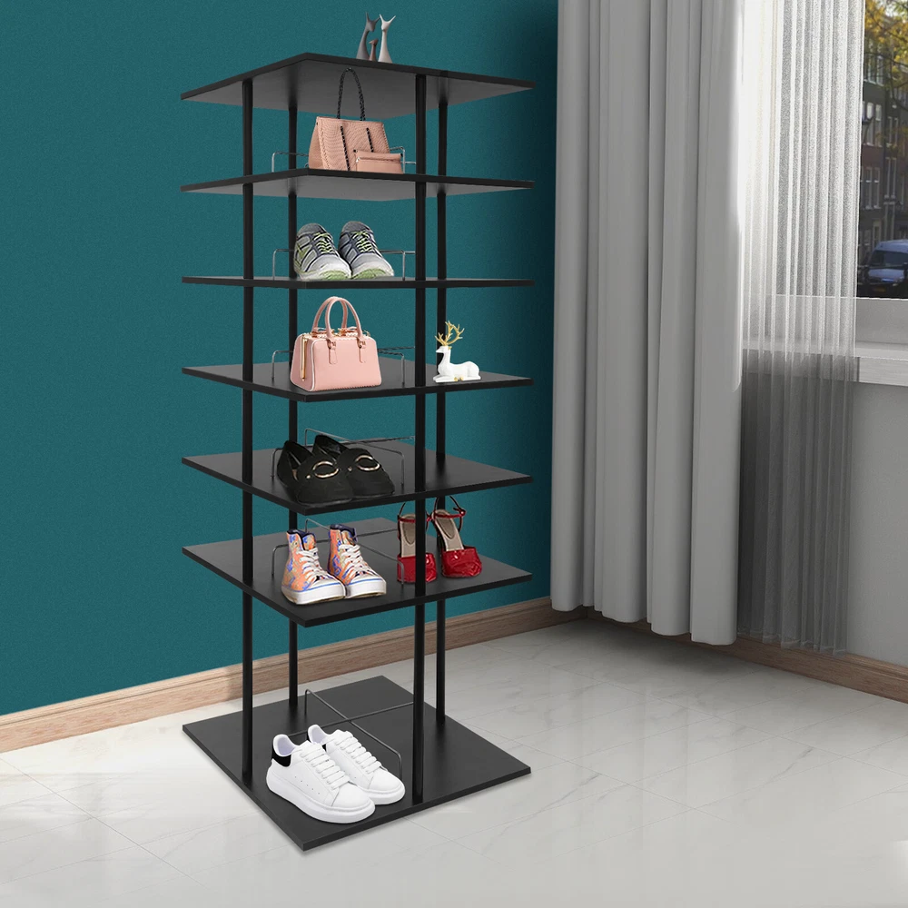 This rotating shoe rack is a game-changer for keeping my collection organized! The 360° spin makes it super easy to find any pair, and the sturdy metal frame holds up to 6 tiers of shoes without wobbling. Assembly was straightforward, and the sleek black design fits perfectly in my modern bedroom. Love that it holds 24 pairs while taking up minimal floor space - definitely worth it for shoe lovers!