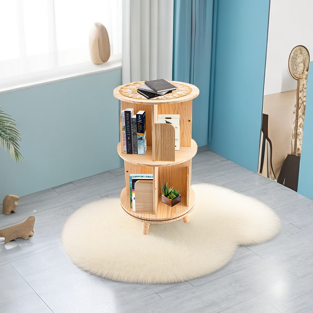 Mounting: Assembly Required Item Weight: 7kg/15.43lbs Additional Parts Required: No Number of Shelves: 1 Item Width: Diameter: 46cm/18.11in Assembly Required: Yes Room: Bedroom, Dining Room, Living Room, Home Office/Study Shipping notice: Can not ship to Puerto Rico/Alaska/Hawaii Pattern: Rotating Bookshelf Shape: Cylindrical Style: Modern Features: Durable and Solid Item Length: Board Thickness: 12mm/0.47in Maximum Weight per Shelf: 50kg/110lbs Maximum Weight Capacity: Each Layer Weight Capacity: 50kg/110lbs Type: 360 Rotating Bookshelf Number of Layers: 2 Department: Adults, Kids Diameter: 46cm/18.11in Product Line: N/A Material: Pine Wood Item Height: 31cm/12.2in Door Mechanism: Rotating Indoor/Outdoor: Indoor Model: Rotating Bookshelf Number of Items in Set: 1 Brand: Unbranded MPN: Does not apply Color: wood Set Includes: Bookcase