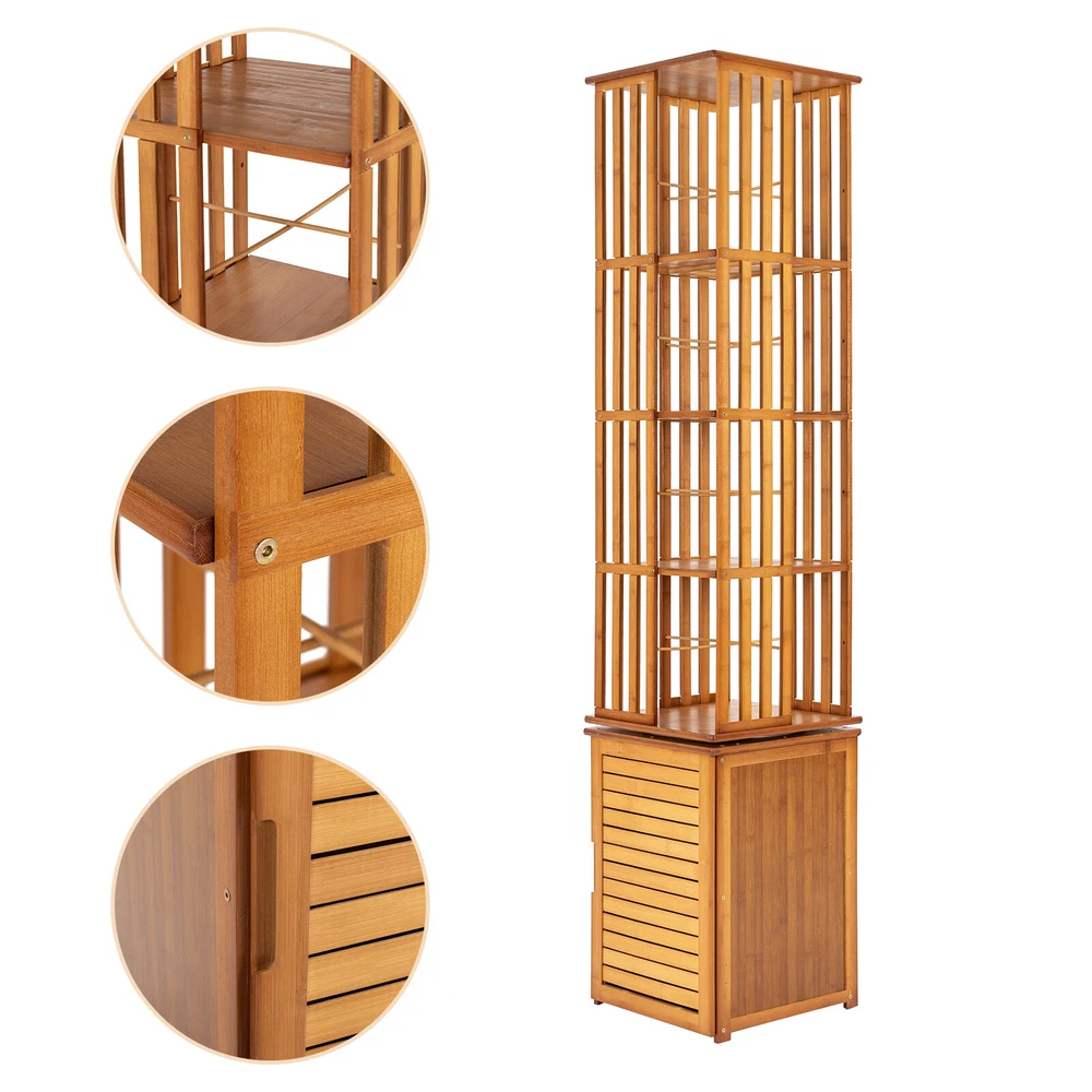 360° Rotating Bookshelf Wood Bookcase Storage Shelf Freestanding Display Rack Description This 360° rotatable bookshelf has a total of six tiers, which can ensure a large storage space and bamboo material makes it highly load-bearing. The rotatable design is convenient for you to pick up items. The simple yet practical shape makes it extremely space efficient, and you can freely assemble it according to your own preferences and needs. Key Features High-quality Material: This bookcase is mad e of bamboo and density board with varnished and paint processes, which is not easily deformed or cracked, and is very environmentally friendly , strong, and durable. Rotatable Design: The 360 ° rotatable design makes all corners within reach, and facilitates access while allowing you to take advantage of each available storage space. Micro Library: With 6 tier shelf design, an open top shelf, and appropriate tier spacing(13.6in/10.6in), this bookshelf is perfect for displaying and organizing about 300 books in different heights, toys, photo albums, plants, and life supplies. The bottom compartment can accommodate some privacy items . Small Footprint : This bookshelf makes efficient use of vertical space to store and organize items. You can build a book world in a small corner of your home or balcony. Strong Load-bearing: This bookshelf uses thick density boards, with each layer bearing up to 22.05 lbs, so you can place most books and other items at ease. Shutter Door Design: Each compartment of the bookshelf is equipped with louvered doors. This design allows you to see at a glance the storage inside the bookshelf, but also all-around dust and moisture resistance . And it will form a beautiful shape on the wall or the ground when rotating the shelf under the light or sunlight, adding a sense of fashion and warm atmosphere to your home. Easy to Install: We provide all the assembly accessories for this item, you just need to follow the detailed image-text instruction to complete the installation. Multifunctional: This bookshelf can be used to be a display rack, or storage organizer in your living room, balcony, office, sitting room, corridor, or any other corner, by displaying books, family photos, toys, CDs, handicrafts, and utensils. Details Rounded Corners: In order to ensure the safety during installation and use, all of the bookcase corners are rounded, which not only enhances the overall aesthetic, but also avoids unnecessary collision. Blocking Strips: They can prevent books from falling and allow for classified storage. Foot Pads: The four rubber foot pads reduce noise when moving the product, but also keep it in place . Enlarged Chassis Steel Ring: The painted steel ring is wear-resistant and not prone to rust, ensuring stable and smooth rotation . Application It can be used to be a display rack, storage organizer in your living room, balcony, office, sitting room, corridor or any other corner, by displaying books, family photos, toys, CDs, handicrafts, utensils. Specifications Material:Bamboo, Density Board, Steel, and Plastic Rubber Color: Brown Swivel: 360 Degrees Finish: Varnished and Paint Treatment Pattern: Fence Style: Modern Mounting Type: Freestanding Special Feature: Waterproof , Durable Assembly Required: Yes Room Type: Family Room, Living Room, Home Office, Library Shelf Type: Bamboo Number of Shelves: 6 Recommended Uses For Product: Indoor Shape: Rectangular Each Tier Load Bearing Capacity: About 10kg/22.05lbs Overall Size: 37*37*222cm / 14.5*14.5*87.4in Bottom Cabinet Height: 50cm / 19.7in Bottom Louvered Cabinet Layer Height: 33cm / 13in Upper Louvered Cabinet Floor Height: 27cm / 10.6in Total Height of Louvered Cabinet: 172cm / 67.7in Footprint: 0.14m² / 1.5ft² Package Included 1x Rotating Bookshelf All Accessories for Assembly Notes Children are forbidden to play and climb. Put the screws in loosely until all pieces are together and then tighten them all. It will save you time if you make a mistake when installing. Please allow the slight color difference caused by the shooting light and 1-3cm error due to manual measurement, and make sure you do not mind before you order. Payment Delivery details Terms of sales About us Contact us Payment We accept ebay payment 。 Fees such as import duties, taxes are not included in the item price or shipping costs. These charges are the buyer's responsibility. Delivery details Shipping: 2-9 working days to: USA Terms of sales We maintain high standards of excellence and strive for hundred percent customer satisfaction. Feedback is very important to us. We hope that you contact us immediately before you give neutral or negative feedback, so that we can address your concerns. It is impossible to address issues if we do not know about them! About us Your satis faction is our ultimate goal. We work hard to earn your trust and future business. Our certified technicians have tested each item before shipping. The unit comes with 1 year limited warranty on all manufacturing defects. a) If you receive a defective item, you may return it or ask for a discount. Please contact us within 14 days after you receive the package. b) What you returned must be intact and in its original packaging as re? u. Customer is responsible for shipping costs of the returned item. c) We will cover the cost of shipping back t with the shipping rate indicated in the registration page. We will send you a new unit or refund the full payment you paid. Thank you. Contact us Business Hour Business Hour: Monday To Friday: 8:30 AM to 5:00 PM (Beijing China time) Due to time zones, our reply to your questions may not be immediately. But within above working time, we will reply your email within 24 hours. If it's non-workdays, please kindly be patient and wait till Monday. Please contact us with ebay message. Please feel free to contact us if you have any questions. Monday To Friday: 8:30 AM to 5:00 PM (Beijing China time) Due to time zones, our reply to your questions may n