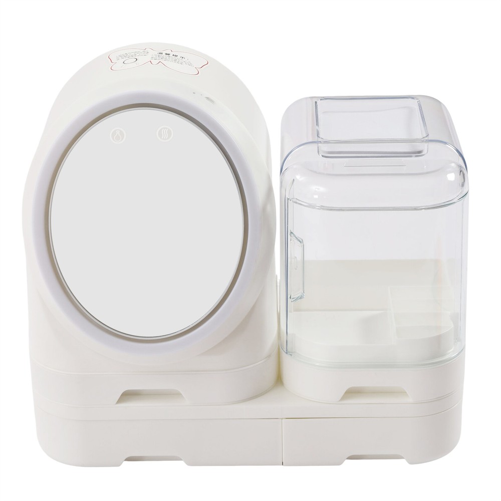 Cosmetic Makeup Box Organizer Storage Case 360?? Rotation Mirror+LED Light Description The exquisite makeup shows our attitude towards life, and the makeup process can let us enjoy ourselves. This makeup organizer can let more people see your beauty. Three different and adjustable light sources can create different styles of makeup for you. The 360-degree rotating mirror also can fully meet your needs. Large capacity provides enough space for you to store skin care products and cosmetics. With this product, your beauty will be further illuminated. Key Features Premium Material: This makeup organizer made of HIPS and PS with good tenacity and rich luster is not easy to split, so you can use it for a long time without frequent replacement. Excellent Light Source: This makeup organizer mainly uses LED light which can achieve 3D three-dimensional light supplements. The 120 light beads are evenly distributed, which can illuminate every inch of the skin and create a more complete makeup. Adjustable Design: Three different lights(warm yellow light, cool white light, and natural light)easily solve the problem of makeup light and create different styles of makeup. In addition, the mirror equipped with a light adjustment button can also rotate 360 ° left and right for optimum angle viewing. You can sit and stand to make up, fully meeting your needs. High Cost-performance: When you receive the product, you can have a make-up mirror, a dimming lamp, a storage box, and a mobile phone holder at the same time, so you don't need to buy them separately, which saves your costs. Split Storage: The makeup organizer is composed of four parts, providing enough space for you to store lipstick, foundation, makeup blush, eye shadow, eyebrow pencil, mask, perfume, jewelry, and other cosmetics. The top of the product can also be used for temporary storage. It is also convenient for you to classify and access items. Built-in Fan: This makeup organizer is equipped with a small fan, and its gentle wind can promote the absorption of water and lotion, save waiting time, make your makeup more comfortable, and reduce makeup loss caused by sweating. You can control it through the buttons on the mirror surface. Beautiful Appearance: The makeup organizer is white, which is a color that will never go out of style, and can match a variety of styles and colors on the makeup table. With smooth lines, the whole product has a sense of modernity and fashion. Ideal Gift: With its beautiful appearance and large storage space, you can give it to your lovers, friends, and family to express your love for them, and it can also be regarded as a holiday gift, such as Valentine's Day and Christmas. Easy to Clean: The makeup organizer has a smooth surface and a proper size of 14.6*8.3*13inch, so you can clean it directly with a towel after a period of use. Ready to Use: The makeup organizer does not need to be assembled. You can use it directly after receiving the goods, which saves you time. Life Assistant: With this product, you can say goodbye to messy and unordered storage, creating a clean environment and a better makeup experience for you. Sufficient Energy: The battery capacity is 1200mAh, so it can be continuously used for 1-3 hours, and interruptedly used for about 12 hours after being fully charged, making it especially suitable for use on the go. Details Grooves: The back of the makeup organizer and the smooth drawer are both provided with grooves, through which you can easily move the makeup organizer, and store and take cosmetics. Mobile Phone Holder: This design allows you to make full use of your time. You can also watch your favorite TV play when making up, making the makeup process more pleasant. Round Corners: This makeup organizer is designed with rounded corners. Compared with the traditional square corners, it can better protect your safety and prevent skin from being scratched. Interior Heightening Area: The height of 23cm/9.06inch allows the makeup organizer to hold most bottled skin care products and is convenient for you to take items. Transparent Dust Cover: This transparent dust cover protects your skin care products and cosmetics from dust. In addition, you can easily see the items inside. HD Mirror: This mirror with multiple functions is not only conducive to controlling the brightness and fan but also can provide you with a more delicate and even makeup. Application This product is suitable for storing cosmetics and skin care products. It can be widely used in desktops, countertops, bathrooms, offices, dormitories, living rooms, bedrooms, dressing rooms, vanity organizers, travel, etc. Specifications Material: HIPS and PS Color: White Style: Modern Light Source Type: 2835 LED Number of Lamp Beads: 120 InternalLength: 23cm/9.06inch 3 Level Led Light: 3200K Warm Yellow Light, 4200K Cool White Light, and 6500K Natural Light Mounting Type: Tabletop Battery Cell Type: Lithium Battery Battery Capacity: 1200mAh Number of Compartments: 4 Service Time: Continuous Use for 1-3 hours, Interrupted Use for about 12 hours Net Weight: 2.7kg/5.95lbs Gross Weight: 2.9kg/6.39lbs Product Size: 37*21*33.5cm/14.6*8.3*13inch Package Size: 40.5*22.5*37cm/15.94*8.86*14.57inch Package Included 1*Makeup Organizer 1* Chinese Instructions Notes 1. Please use it on the table with an inclination of no more than 6 degrees to prevent it from toppling. 2. Please do not disassemble or bump the battery. Do not squeeze or put it into the fire. In case of mass production expansion, please do not continue to use it. Do not expose the battery to high temperatures. When the battery energy is low or there is no power, the switch button will not light up and close normally. Please charge it in time. 3. After starting the soft air fan, please open the mirror cover to blow out the soft air. Touch the fan key to turn on the fan, and touch it again to turn off the fan. 4. Touch the light key to turn on the light. Touch the switch twice or three times to ad