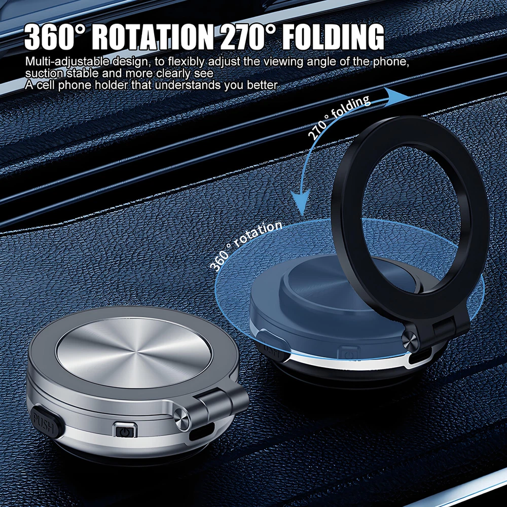 You may also like 2024 Motorcycle Cell Phone Mount Holder Wireless USB Charger 15W Fast Charging_ 33.49 USD Free shipping TELESIN Magnetic Neck for GoPro Hero 5 6 7 8 9 10 Hold Mount Quick Release Mount 22.18 USD Free shipping Product Description 360° Rotation Phone Holder Vacuum Magnetic Suction Car Phone Mount Silver&Black. ⭐Function: 【 Magnetic Suction Holder 】 Our Magnetic Car Suction Cup Holder features a ring-shaped metal panel with 32 N52 rubidium magnets, providing the highest magnetic strength in the industry. 【360 Degree Rotation】 In order to provide a better viewing angle, the suction cup mount has a 360-degree swivel function that allows users to adjust the direction and angle of the phone. 【Easy to Install】 The Magnetic Car Suction Cup Holder is designed to be easy to install. It features a suction cup that easily attaches to any smooth surface, such as a car window or dashboard, glass, smooth tiles, easy to install, no tools required. 【Universal Mobile Phone Holder】 The Phone Holder is universal and suitable for various brands and models of smartphones. The magnetic adsorption function of the mount makes it widely compatible, so users don't need to worry about whether their phones are suitable or not. ⚙Parameters: Product Name: Electric Magnetic Disc Folding Stand Product Material: ABS+PC+Aluminum Alloy Product Color: Dark Black+Space Gray Applicable Models: Smartphones Over 4.7 Inches In Size Size: 65mm * 58mm * 25mm Installation Method: Suction Cup Type 🎁Packing list: Magnetic Bracket*1 Payment We accept PayPal only. If buyer want to delay the payment because of financial problem, please contact me by the ebay message within 3 days Payment via PayPal (PayPal accepts all major credits/debit cards and eCheque) ECheque payment will tak e 3-10 days to get clear, thus DELAYing the shipment. Shipping Handling time: 1 business day (Orders are not processed on weekends & holidays) Tracking information will be sent once item is shipped. Local pick-up is unavailable at the moment. For international shipping and shipping to Guam, Hawaii and Alaska, Please contact us before placing the order. Item is shipped to ebay address. Leaving correct address can minimize delay. Terms For any issues with Defects, Return, Item Exchange request, please contact us first and send us a message first before opening any type of case or request. We devote ourselves making EVERY CUSTOMER in 100% Satisfactory and resolve any problem. We highly value and appreciate your business. Thank you. No returns will be accepted without an RMA number. Please contact us for the RMA number. Return is acceptable within 30 days of delivery. Return for replacement or money back is optional. Returned items must be in the brand new, unaltered and resalable condition. Seller is not responsible for any labor cost, expense in a dealer store, or damage due to wrong installation. Returns Return is accepted within 14 days after the buyer's receiving the item. (Excluding contrived damagement or misusage).100% money-back Guaranteed! All product will be tested in 100% before delivery.If the item is defected by the processing of postage,Buyer has up to 14 days from date of receipt for exchange of a new one.All shipping charges for returned products are to be paid by the buyer,Please contact us for the return address Contact Us All messages will be answered within 24 office hours. Please contact us either by clicking "contact seller" in the "purchase history" section or simply click "ask a question" at the bottom of this page. If you are unsatisfied with our item or service, please contact us before leaving any feedback. We are committed to resolve all issues in a friendly and satisfactory manner. We always reply to messages within 2 business days (off-duty at weekend). If you do not get a response from us, then please check your junk or spam mailbox. powered by