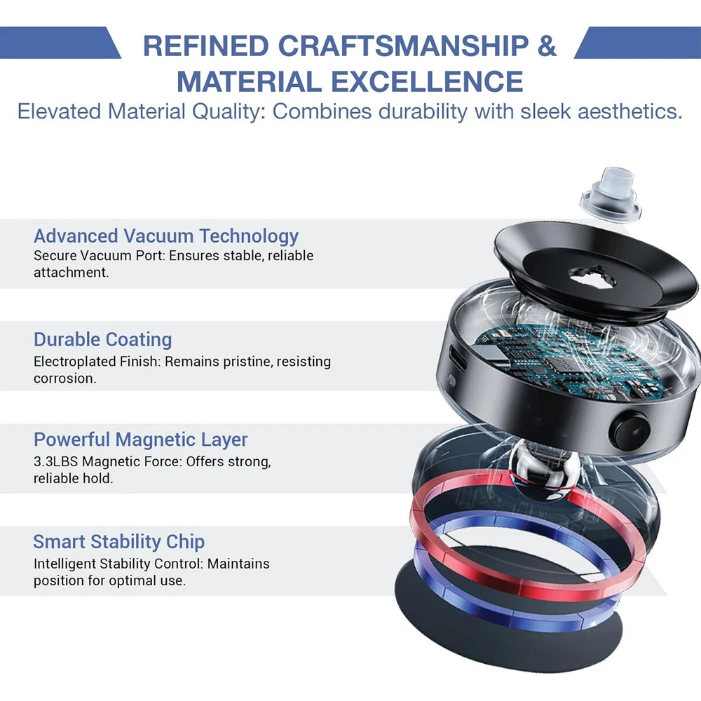 Magnetic Car Suction Cup Holder,Vacuum Glass Mirror Adsorption Magnetic Suction Cup car Phone Mount,360° Rotation Portable Magnetic Phone Holder for Windshield Dashboard Features: 【Magnetic Suction Holder】Our Magnetic Car Suction Cup Holder features a ring-shaped metal panel with 32 N52 rubidium magnets, providing the highest magnetic strength in the industry. 【360 Degree Rotation】In order to provide a better viewing angle, the suction cup mount has a 360-degree swivel function that allows users to adjust the direction and angle of the phone. 【Easy to Install】The Magnetic Car Suction Cup Holder is designed to be easy to install. It features a suction cup that easily attaches to any smooth surface, such as a car window or dashboard, glass, smooth tiles, easy to install, no tools required. 【Universal Mobile Phone Holder】 The Phone Holder is universal and suitable for various brands and models of smartphones. The magnetic adsorption function of the mount makes it widely compatible, so users don't need to worry about whether their phones are suitable or not.