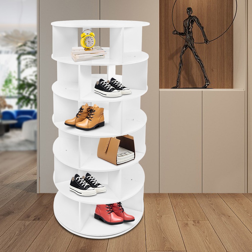 Rotating Shoe Rack, Storage Spinning Shoe Rack Tower, Free Standing 360?? Description Are you still struggling with shoe storage? Then please take a look at our product. Our rotating shoe rack is a home storage solution that combines rotation with elegant design. With a simple structure and smooth surface, it is easy to install, clean, and use. It can provide you with a more comfortable and neater home. Key Features Last and Durable: It is mainly made of high-class PVC, which makes this item environmentally friendly , wear-resistant , and impact-resistant , so it can provide good performance for a long time. Thoughtful Design: The six-tier design makes it easy for you to categorize various shoes or books, and the top platform can hold potted plants, keys, and other items for easy access, making your home look neater. In addition, the 360° rotating design can showcase your shoes well, while the open design helps you place your shoes and promotes air circulation to prevent them from getting damp. Excellent Load Capacity: Sturdy construction and premium material allow it to hold up to 110 lbs, so you can use it to place your shoes with confidence. Neat Lifestyle: This shoe rack cleverly integrates shoe storage into life, placing it at the doorway to put away messy shoes, making it pleasing to the eyes as soon as you open the door, bringing you a neat lifestyle. Easy to Clean: With its smooth surface and simple construction, you can wipe its surface clean with a damp rag (not included). Space-saving: With its compact footprint(23.6 inches in diameter) and multi-tier design, you can place it in an entryway or doorway without taking up too much space. Simple Installation: With complete accessories, a simple structure, and an English installation manual you can do the installation yourself and enjoy the process. Ideal Gift: Thanks to its beautiful appearance and functionality, you can give it to your friends as a housewarming, Christmas, or Thanksgiving gift! Details Round Edges: Smooth, burr-free edges are comfortable to touch and enhance the safety of use. Mortise and Tenon Joint: It utilizes mortise and tenon joints to facilitate quick installation while ensuring stability . Practical Sandpaper: It can help you polish the edges and corners of the product, making it feel more comfortable to touch. Application It can accommodate various types of shoes, including shoes, high heels, sports shoes, etc. In addition, storage or display racks for daily necessities such as CDs, books, photo albums, plants, towels, small appliances, etc. can also be used. It is suitable for places such as doorways, bedrooms, dormitories, apartments, living rooms, etc. Payment Delivery details Terms of sales About us Contact us Payment We accept ebay payment 。 Fees such as import duties, taxes are not included in the item price or shipping costs. These charges are the buyer's responsibility. Delivery details Shipping: 2-9 working days to: USA Terms of sales We maintain high standards of excellence and strive for hundred percent customer satisfaction. Feedback is very important to us. We hope that you contact us immediately before you give neutral or negative feedback, so that we can address your concerns. It is impossible to address issues if we do not know about them! About us Your satis faction is our ultimate goal. We work hard to earn your trust and future business. Our certified technicians have tested each item before shipping. The unit comes with 1 year limited warranty on all manufacturing defects. a) If you receive a defective item, you may return it or ask for a discount. Please contact us within 14 days after you receive the package. b) What you returned must be intact and in its original packaging as re? u. Customer is responsible for shipping costs of the returned item. c) We will cover the cost of shipping back t with the shipping rate indicated in the registration page. We will send you a new unit or refund the full payment you paid. Thank you. Contact us Business Hour Business Hour: Monday To Friday: 8:30 AM to 5:00 PM (Beijing China time) Due to time zones, our reply to your questions may not be immediately. But within above working time, we will reply your email within 24 hours. If it's non-workdays, please kindly be patient and wait till Monday. Please contact us with ebay message. Please feel free to contact us if you have any questions. Monday To Friday: 8:30 AM to 5:00 PM (Beijing China time) Due to time zones, our reply to your questions may not be immediately. But within above working time, we will reply your email within 24 hours. If it's non-workdays, please kindly be patient and wait till Monday. Please contact us with ebay message. Please feel free to contact us if you have any questions. * Feature * Fast shipping from US Warehouse Brand Unbranded Material PVC Color White Style Modern Shape Column Mounting Type Floor Standing Assembly Required Yes Number of Tiers 6 Rotation 360° Product Size(D*H) 60*121cm/23.6*47.6 in Each Tier Spacing 18cm/7.2 in Package Size 65*65*16cm/25.59*25.59*6.3 in Total Load Capacity About 50kg/110 lbs Gross Weight 16kg/35.27lbs Net Weight 15.2kg/33.5lbs Item Height 24 in Item Length More Than 45 in Type Shoe Cabinet Item Width 8 in