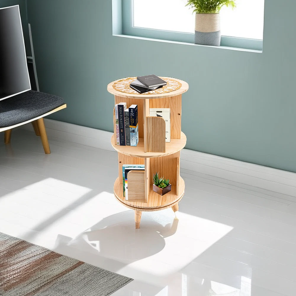 1. This rotating bookshelf is a game-changer for small spaces! The 360-degree spin makes it super easy to access books or decor from any angle, and the sturdy pine wood holds up to 50kg per shelf—plenty for heavy books. Assembly was quick, and the natural wood finish adds warmth to my room. Perfect for organizing without taking up much floor space. Love how it displays my favorite reads while keeping everything within reach!