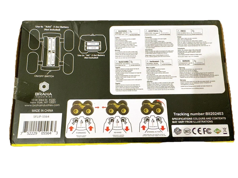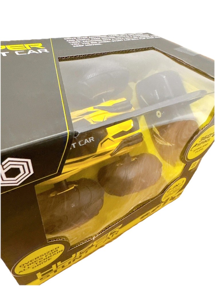The Braha Hyper Stunt Car is a 2-in-1 buggy designed for exciting stunts with its ability to perform 360-degree spins. It features oversized tires for all-terrain driving, making it suitable for both off-road and on-road surfaces. This electric-powered car is recommended for children aged 3-11 years old and offers a 4WD drive system for enhanced control and performance. The vibrant yellow color and modern design of the Hyper Stunt Car add to its appeal, providing a thrilling RC experience for young enthusiasts.