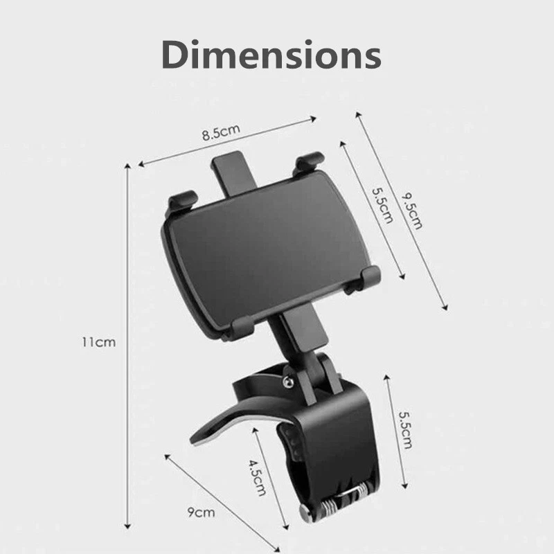 Universal Auto Rückspiegel Handy Halterung 180 Grad faltbar Telefon Halter Features: 1. Car phone holder for placing your phone securely while driving. 2. 360-degree rotating design, you can adjust it to any angle you want. 3. You can switch between horizontal and vertical screens. 4. One-hand control, easy to pick up and put back your phone with one hand. 5. Adapt to multiple scenes, easy to follow the darama in the home, office and car. Specifications: Material: ABS Color: Black Size: As the pictures show Application: Dashboard, Interior Mirror, Sun visor Fit for 3-7 inches mobile phones universal Package includes: 1 x Car phone holder Notes: 1. Please allow slight dimension difference due to different manual measurement. 2. Due to the light and screen setting difference, the color of the item may be slightly different from the pictures. Thanks for your understanding.