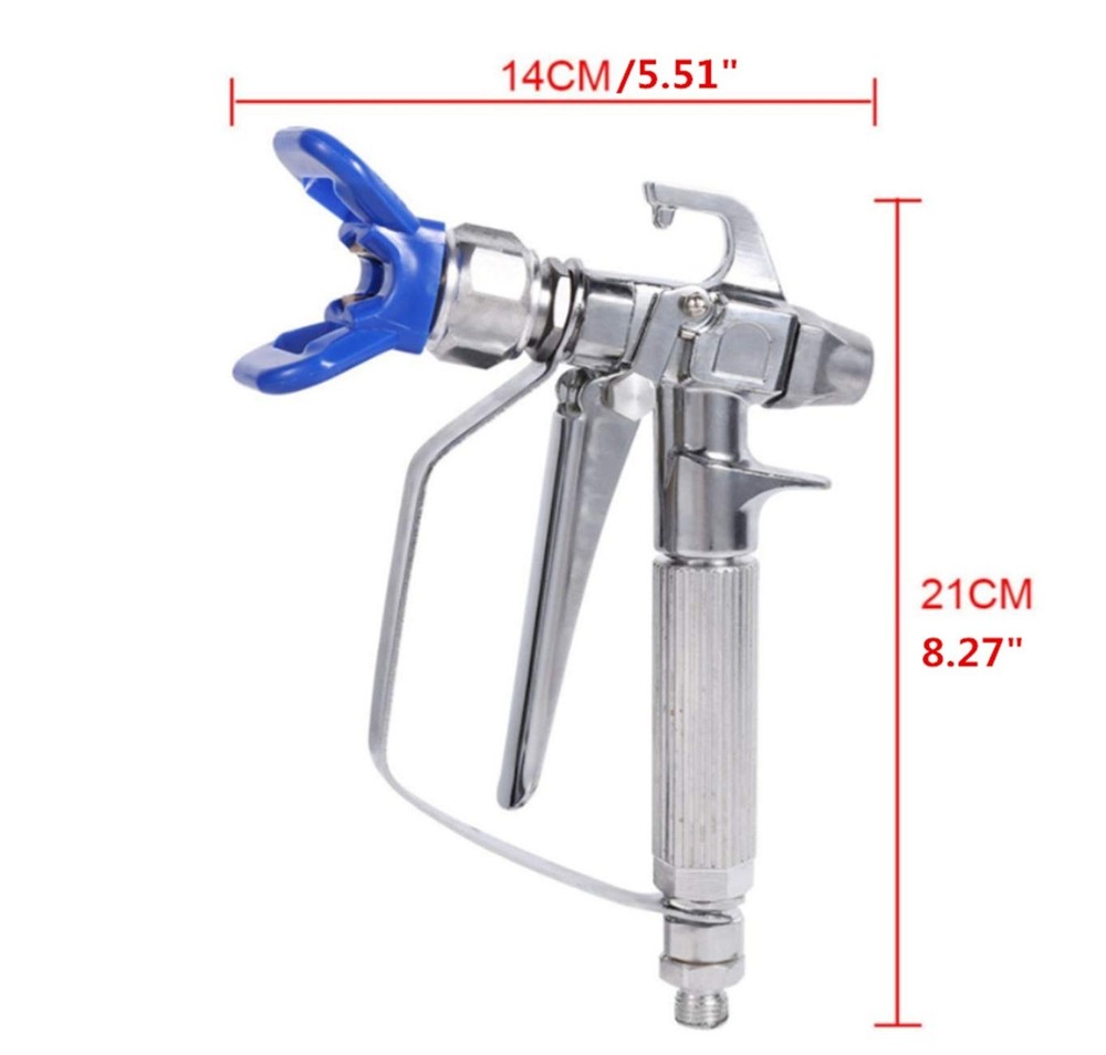 Package Included: 1 x spray paint (with base) 1 x517 or 525 random airless spray tip (with seal) 5 x Airless Paint Spray Gun Filter (60mesh) Airless spray gun is perfect for varnishing and dispersion paints. It works with a maximum pressure of 248 bar. Works with the nozzle. Connection type G 1/4 or G 7/8 male. Made of stainless steel, high quality, rust resistant, sturdy and durable.Distance of spray: 300 mm.Pressure output: 20.7MPA. Widely used in ships, bridges, towers, poles and other large long-term metal structures of the industry anti-corrosion and painting of the construction industry Designed in the design of filters, easy to replace, it is possible to filter the paint to reduce nozzle clogging. Ergonomic handle designed to reduce fatigue.Fast, easy to clean, easy to use, excellent atomization.