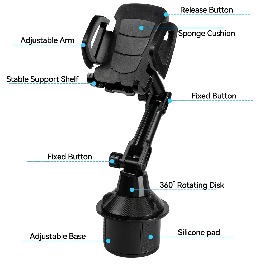 Version: holder MPN: Does Not Apply Mounting Location: Cup Holder Manufacturer Part Number: Does Not Apply Item Width: 10x7x3 inch Color: Black Design/Finish: Extendable Neck,Adjustable Base Compatible Brand: Universal, For Apple, For HTC, For Huawei, For Samsung, For Xiaomi Wireless Charging Standard: manual Qty: 1 Compatible Model: For any Phone 4 to 7 Inches, For Apple iPhone 11, For Apple iPhone 12, For Apple iPhone 8, For Apple iPhone X, For Samsung Galaxy S10, For Samsung Galaxy S20, For Samsung Galaxy S8, For Samsung Galaxy S9, Universal Mounting Type: Clip gtin13: does not apply Cable Length: n/a Item Weight: 10oz Character: car cars Features: Extendable Neck, Adjustable Base, 360° rotatable Manufacturer Color: black Item Length: 10x7x3 inch Warranty: One Year Warranty Item Height: 10x7x3 inch UPC: does not apply Type: Car Mount,Phone Holder Number of Ports: 1 Country/Region of Manufacture: Hong Kong Fit For: For iPhone,Samsung,Universal Material: Plastic Manufacturer Warranty: 1 Year Connectivity: manual Brand: Unbranded Fastening: clip Items Included: Mount Theme: n/a Character Family: Car, Cars