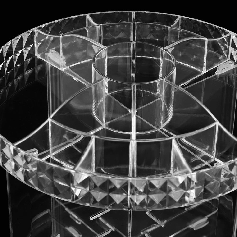 Description This rotating cosmetic storage shelf is made of PS with an injection molding process to ensure long-term use. Its elegant diamond texture and clear design make it a great addition to any room, while the adjustable height allows for versatility in storing organized items. It features a 360-degree silent rotation and easy-to-use construction. It is suitable for use in a variety of settings, including dressers, desks, bedrooms, bathrooms, and kitchens. Specification Material: PS Color: Clear Shape: Round Style: Modern Pattern: Diamond 360° Rotatable: Yes Number of Items: 1 Number of Trays: 4 Adjustable Height: 6 Gears Specific Uses For Product: Cosmetics Process: Injection Molding Assembly Required: Yes Installation Type: Tabletop Ind welcome Description This rotating cosmetic storage shelf is made of PS with an injection molding process to ensure long-term use. Its elegant diamond texture and clear design make it a great addition to any room, while the adjustable height allows for versatility in storing organized items. It features a 360-degree silent rotation and easy-to-use construction. It is suitable for use in a variety of settings, including dressers, desks, bedrooms, bathrooms, and kitchens. Specification Material: PS Color: Clear Shape: Round Style: Modern Pattern: Diamond 360° Rotatable: Yes Number of Items: 1 Number of Trays: 4 Adjustable Height: 6 Gears Specific Uses For Product: Cosmetics Process: Injection Molding Assembly Required: Yes Installation Type: Tabletop Indoor/Outdoor Usage: ‎Indoor Max. Load Capacity: 5kg/11.02lbs Product Size(D*H): 24*33cm/9.5*13in Package Size: 35*15.5*34.5cm/13.78*6.1*13.58in Net Weight: 0.83kg/ 1.83lbs Gross Weight: 1kg/2.2lbs Package Included 1* Rotating Cosmetic Storage Shelf Other Accessories for Assembly Key Features Build to Last: Made of selected PS with an injection molding process, this product is not easy to rust, ensuring durability and longevity. Elegant Appearance: The round frame, clear tone, and diamond texture give this product a modern and simple appearance that will match your room well. Adjustable Height: You can adjust the height(6 gears) by adjusting the trays according to the height of the organized items, making it possible to accommodate various cosmetics in large or small sizes. 360-degree Silent Rotation: Designed with 6 steel balls on the chassis, this product is 360° rotatable in a silent manner, making it easy for you to pick up the items. Keep Your Cosmetics Sorted: The large top panel with multiple compartments and a round brush holder, together with the 4 trays, allows you to compartmentalize your makeup brushes, perfumes, nail polish, lipsticks, eye shadows, skincare products, and more to make them have their exclusive space. Simple Installation : With a simple structure and accurate hole positions, you can assemble this product quickly without the need for complex tools, making it very convenient. Easy to Clean: It has a smooth surface and a simple structure, so you only need to wipe the dust away with a towel. Ideal Gift: This practical product will be a wonderful surprise for your wife, girlfriend, or friends, bringing them a more exquisite life. Buy with Confidence: We are honored that you have chosen our product. We have sufficient confidence in the quality of the product so that you can buy it confidently. But if you have any questions, you can contact our customer service, he will patiently answer and solve your problems. Details Rubber Pads: They can better secure the trays. Round Edge: The smooth and round edges care for your hands, making it safer to use. Application This product can be used for dressers, desks, bedrooms, bathrooms, dormitories, etc. for holding a variety of items including cosmetics, toiletries, and more. Notes This package includes a cosmetic storage shelf only, not including cosmetics. Please allow the slight color difference caused by the shooting light and the 1-3 cm error due to manual measurement, and make sure you do not mind before ordering. Payment Delivery details Terms of sales About us Contact us Payment We accept ebay payment 。 Fees such as import duties, taxes are not included in the item price or shipping costs. These charges are the buyer's responsibility. Delivery details Shipping: 2-9 working days to: USA Terms of sales We maintain high standards of excellence and strive for hundred percent customer satisfaction. Feedback is very important to us. We hope that you contact us immediately before you give neutral or negative feedback, so that we can address your concerns. It is impossible to address issues if we do not know about them! About us Your satis faction is our ultimate goal. We work hard to earn your trust and future business. Our certified technicians have tested each item before shipping. The unit comes with 1 year limited warranty on all manufacturing defects. a) If you receive a defective item, you may return it or ask for a discount. Please contact us within 14 days after you receive the package. b) What you returned must be intact and in its original packaging as re? u. Customer is responsible for shipping costs of the returned item. c) We will cover the cost of shipping back t with the shipping rate indicated in the registration page. We will send you a new unit or refund the full payment you paid. Thank you. Contact us Business Hour Business Hour: Monday To Friday: 8:30 AM to 5:00 PM (Beijing China time) Due to time zones, our reply to your questions may not be immediately. But within above working time, we will reply your email within 24 hours. If it's non-workdays, please kindly be patient and wait till Monday. Please contact us with ebay message. Please feel free to contact us if you have any questions. Monday To Friday: 8:30 AM to 5:00 PM (Beijing China time) Due to time zones, our reply to your questions may not be immediately. But within above working time, we will reply your email within 24 hours. If it's non-workdays, please ki