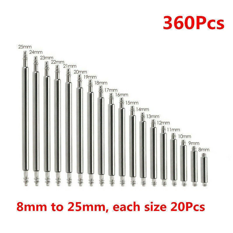 360pcs Watch Pins Spring BARS Band Strap Link 8-25mm Repair Kit Stainless Steel