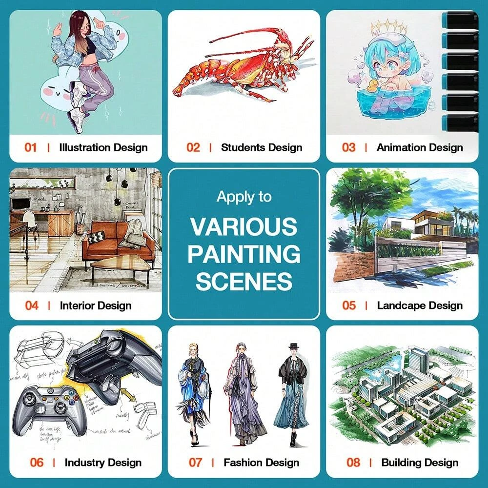36/60/80/168 Colors Alcohol Markers Dual Tips Permanent Art Markers Pen For Student & Adult, Sketch Markers For Painting, Coloring, Sketching And Drawing 重试 错误原因