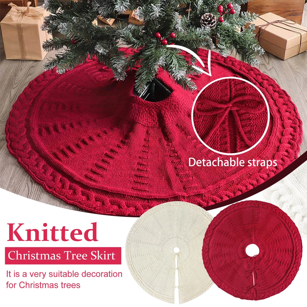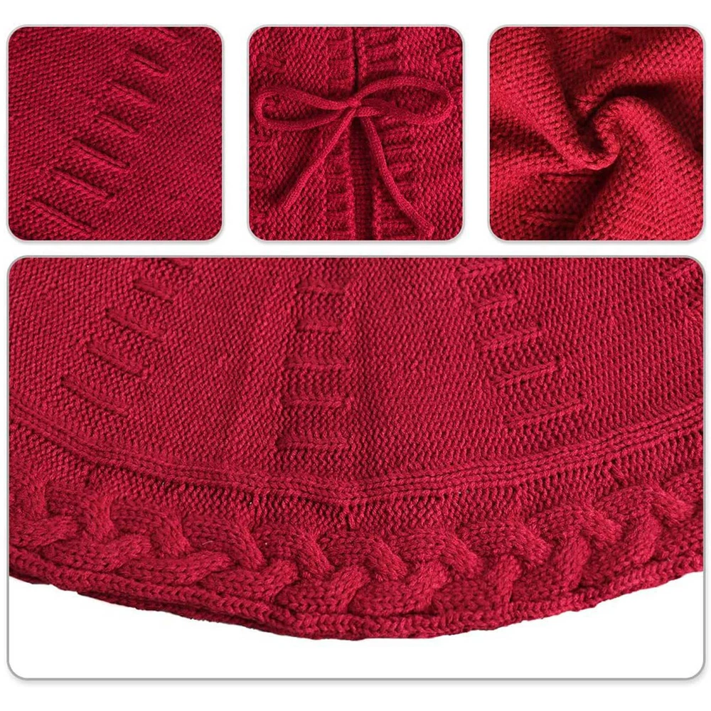 Knitted Christmas Tree Skirt: Wine Red Tree Skirt, Cable Knit Thick Rustic Christmas Tree Decorations, Christmas Decor Xmas Holiday Home Party Decorations Description: 【Christmas Tree Skirt】Our beautifully designed and richly patterned Christmas tree skirts enhance the charm and of your Christmas tree and effectively hide the Christmas tree base. They add a of sophistication to your Christmas tree decorations, making it more beautiful. 【Multiple Patterns and Sizes】This Christmas tree skirt comes in three sizes, 24 inches, 36 inches, and 48 inches. 24 inches is suitable for Christmas trees from 3 feet to 6 feet, and 36 inches is suitable for Christmas trees from 4 feet to 7 feet. 48 inches is suitable for Christmas trees from 5 feet to 8 feet. There are a total of 2 different patterns for you to choose from. You will find the perfect you need in our tree skirts. 【Easy to Use】Simply wrap the Christmas tree skirt around the tree base and adjust it to the right position. You can place your favorite Christmas decorations on the skirt, and it also provides a warm and comfortable place for your children or to play. In addition, the tree skirt can hide the unsightly places of the tree base and catch needles and leaves, keeping your home clean all winter long. 【High-quality Materials】These Christmas tree skirts are made of high-quality and sturdy fabrics, giving a comfortable and warm feeling. They are reusable, have a long service life. You can use this Christmas tree skirt as a home rug, or reuse it for next year's Christmas decorations. 【Classic Christmas Decorations】These tree skirts are perfect for enhancing the festive atmosphere of Christmas trees, Christmas villages, indoor Christmas decorations, and even outdoor Christmas decorations, bringing warmth and luck to your holidays. Specification: Material : Polyester Note: There might be 2-3cm errors of dimension data due to manual measurement. There might be slightly color difference due to different light and monitor effect. Package includes: 1*Knitted Tree Skirt