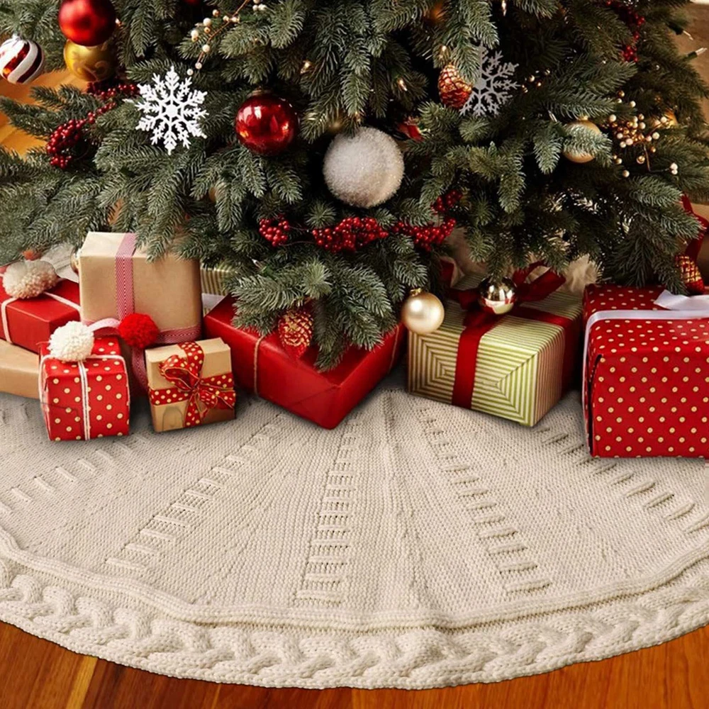 36/48 Inch Knitted Christmas Tree Skirt Thick Rustic Christmas Tree Decorations
