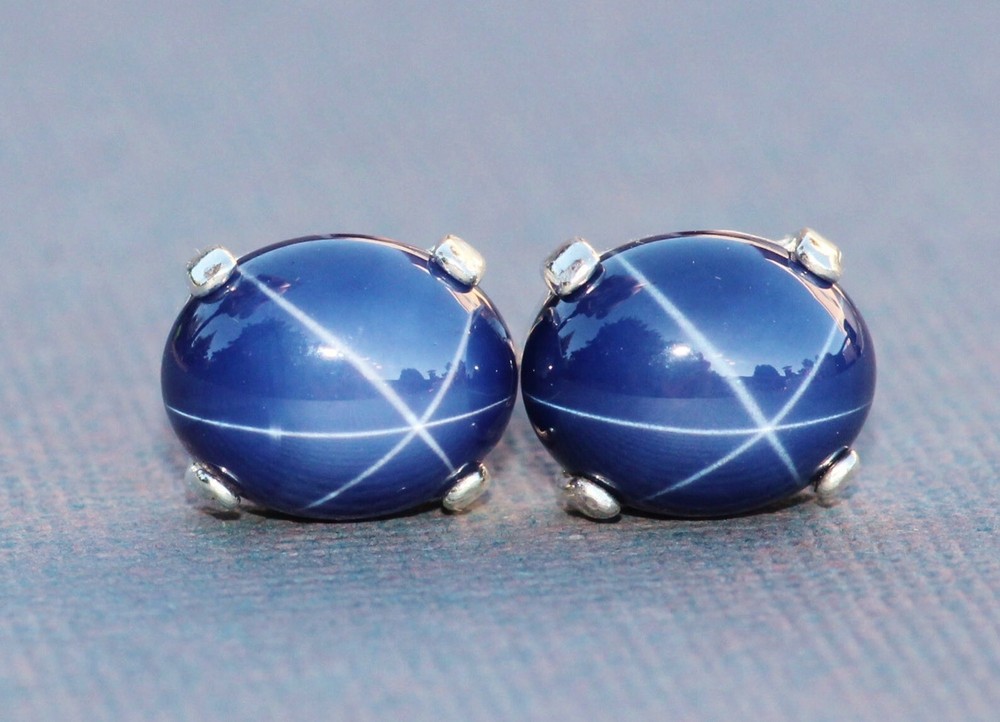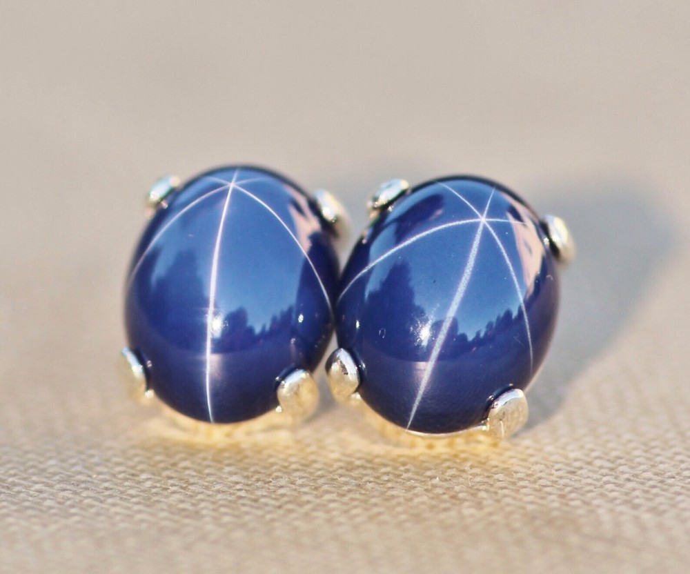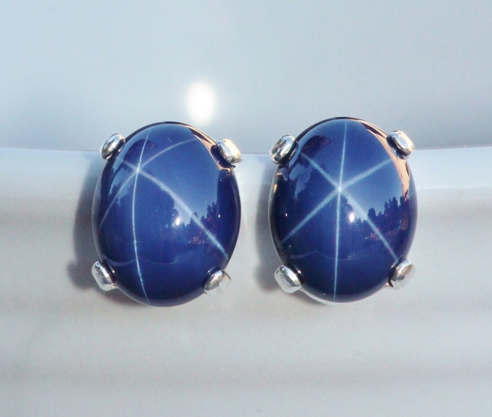 36.75 Ct Certified Blue Star Sapphire Sterling Silver Stud Earrings Pair