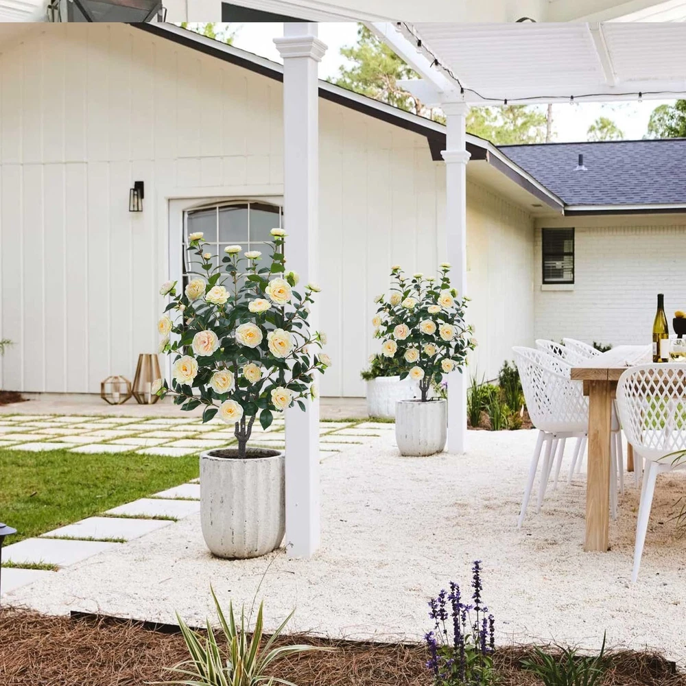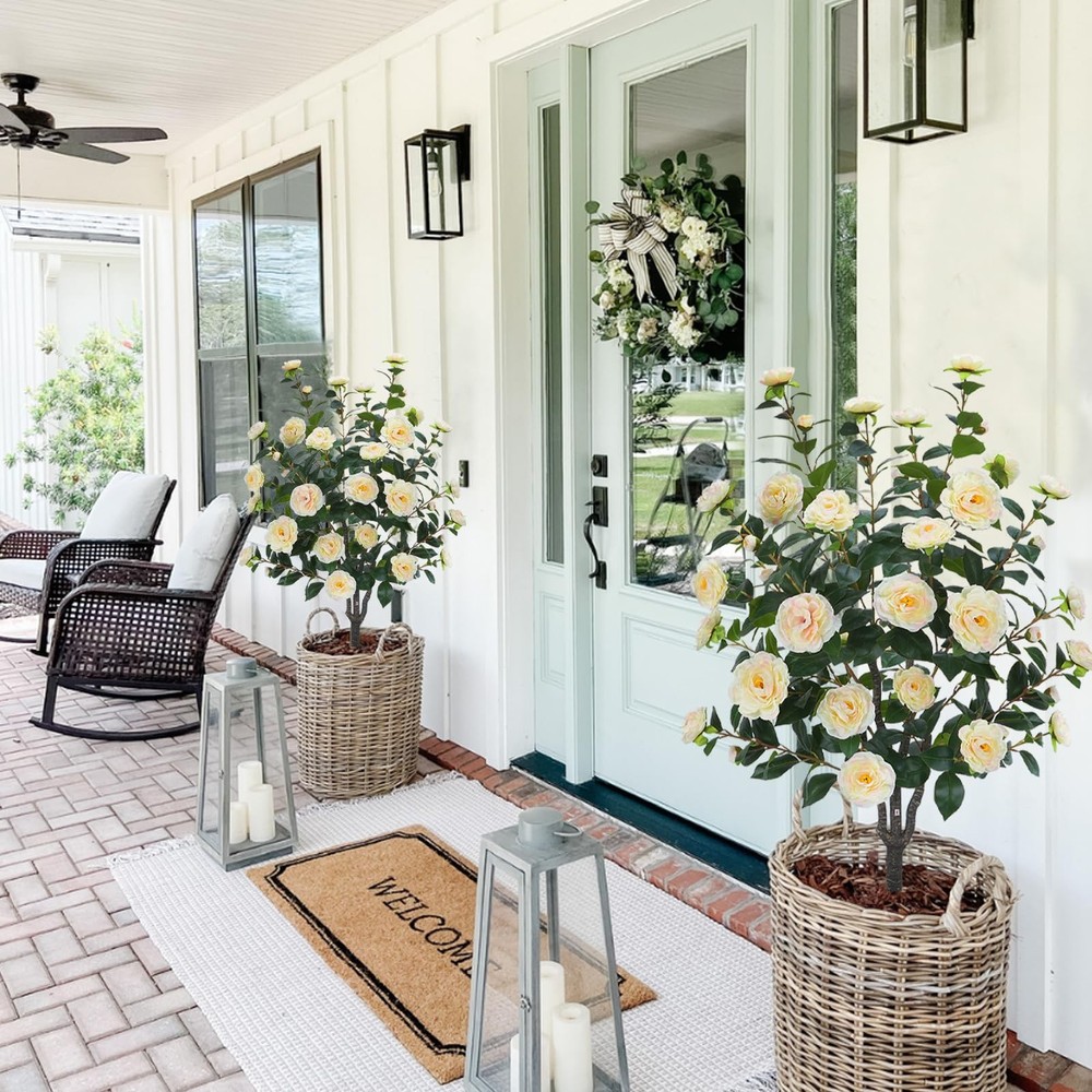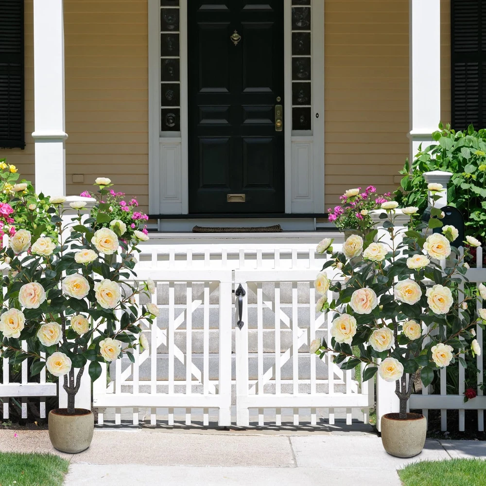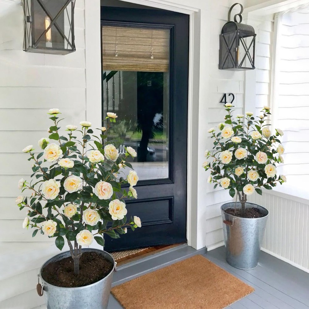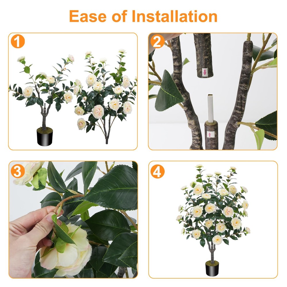 Artificial Camellia Tree Faux Tree Indoor for Home Outdoor Porch Front Door Spring Decor Lifelike Camellia: Artificial camellia features 232 lush green leaves and 32 vibrant flowers. The rubber leaves delicately replicate the texture and shine of fresh foliage, while the soft yellow pink silk flowers are bright and natural-looking, beautifully capturing the essence of a real camellia tree. This elegant design adds a touch of natural beauty to any living space. Easy to maintain: Compared with Real camellias, outdoor artificial trees do not need to worry about withering due to seasons, temperature changes, and lack of watering. Just wipe them regularly to maintain the best blooming appearance. Whether placed indoors or outdoors, they can be vibrant and eye-catching. Perfect Size and Stability: Standing at 43.3" (3.6 ft) tall, this yellow pink artificial camellia is the ideal size for plant decoration. It features a concrete-weighted pot for stability, which can be topped with decorative dry moss to enhance its beauty. This combination makes it a stylish and reliable choice for any space. Versatile Decoration: This faux bonsai tree realistic is perfect for enhancing both indoor and outdoor spaces, adding a natural touch to doorways, porches, patios, living rooms, bedrooms, offices, stores, and more. Tip: For outdoor use, place the tree in a shaded area to avoid direct sunlight and maintain its vibrant appearance. Ideal Gift Choice: This elegant and vibrant artificial camellia tree makes a perfect gift for family and friends.Realistic tree bright and charming design serves as both a stylish home decoration and a thoughtful present for occasions like housewarmings, birthdays, or holidays, bringing a touch of natural beauty to any living space.