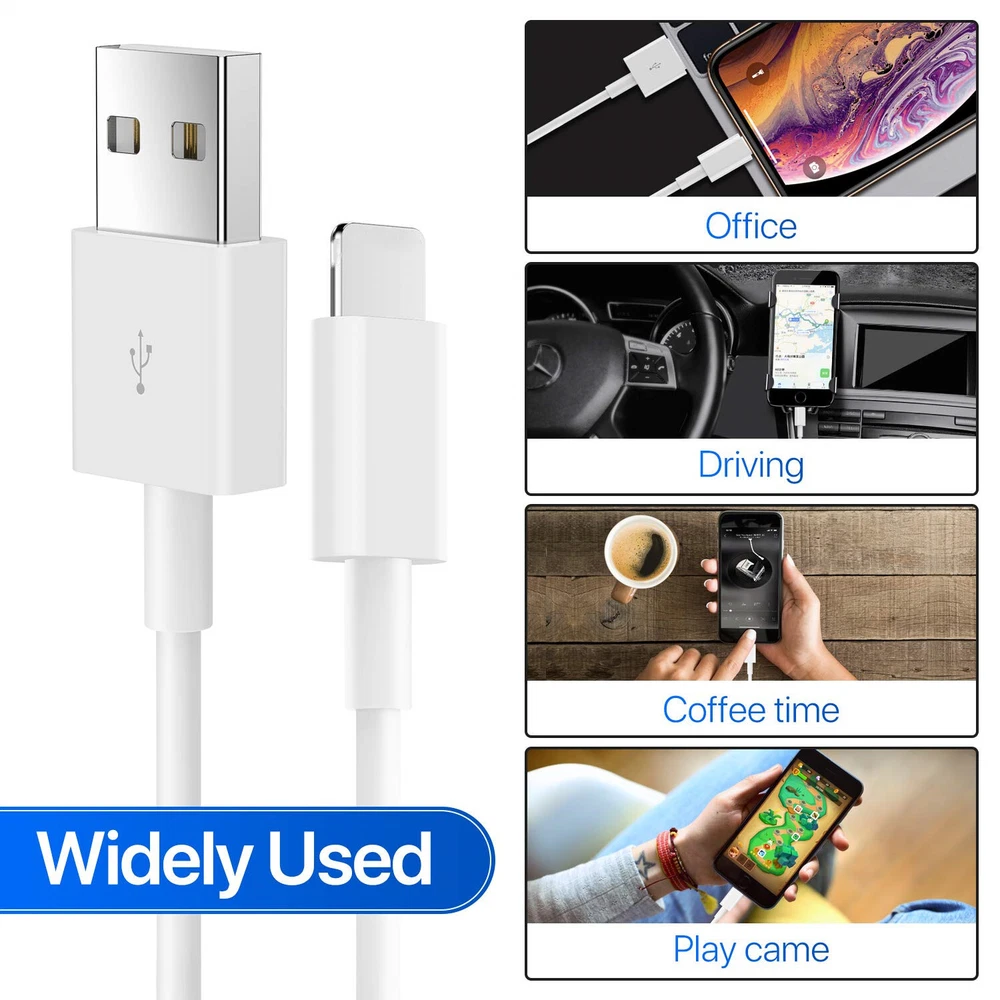 Feature: Incredible Charging Speed: Wide-diameter wires and reduced cord resistance maximize charging speed (supports up to 2.4 amps charging current). More Durable -- Reinforced stress points with a 5000+ bend lifespan make Power Line many times more durable than anything else on the market. Secure Fit: Sturdy unibody connectors resist damage while ensuring a secure fit with every insertion. FAST CHARGE For iPhone C ABLE: High tenacity and high purity copper wires inside For iPhone charger cord contribute to fast charging and stable data transfer This cable is not an original, but with top quality. 100% Brand New Top Quality 2 in 1 functionality Data Sync & Charger Cable USB 2.0 Compatible Cable Length: 3/ 6 FT Built with high quality material and tested to work with all IOS system COMPATIBLE MODELS: For iPhone 13 mini For iPhone 13 For iPhone 13 Pro For iPhone 13 Pro Max For iPhone 12 mini For iPhone 12 For iPhone 12 Pro For iPhone 12 Pro Max For iPhone 11 For iPhone 11 Pro For iPhone 11 Pro Max For iPhone XS Max For iPhone XR For iPhone XS For iPhone X For iPhone 8 Plus For iPhone 8 For iPhone 7 Plus For iPhone 7 For iPhone 6s Plus For iPhone 6s For iPhone 6 Plus For iPhone 6 For iPhone 5s For iPhone 5c For iPhone 5 For iPhone SE (2nd Generation) For iPad Pro For iPad Air / Air 2 For iPad Mini / mini 2 / mini 4 For iPad 4th gen For iPod Touch 5th gen For Airpods