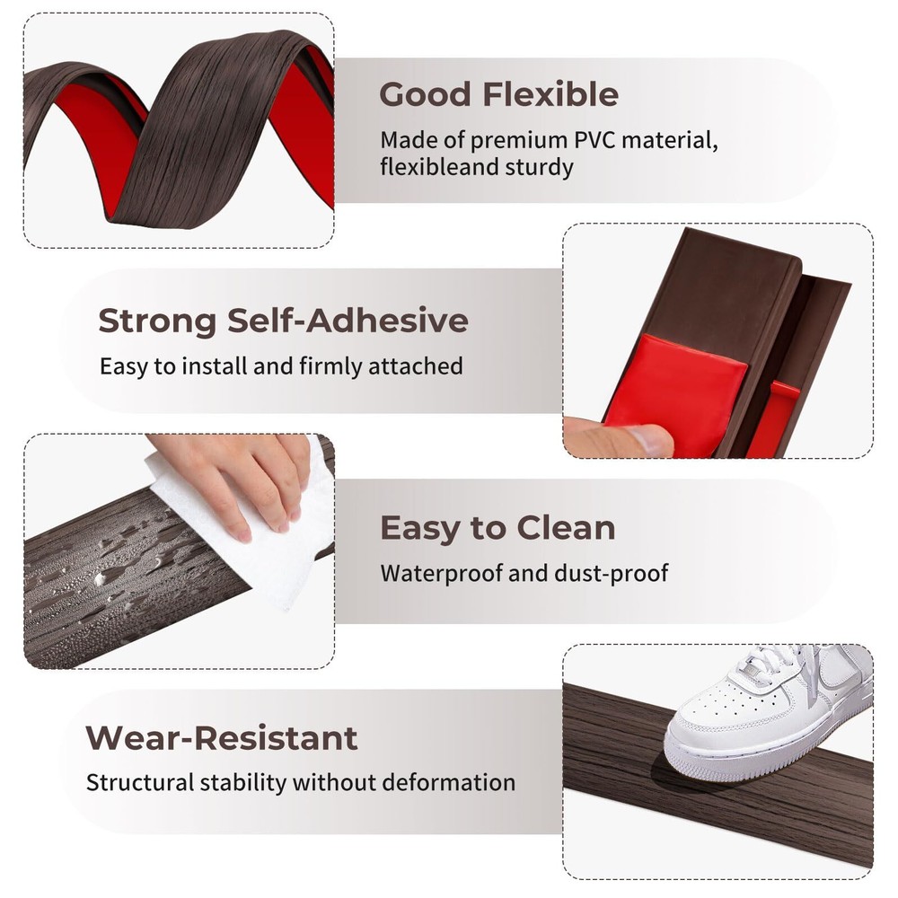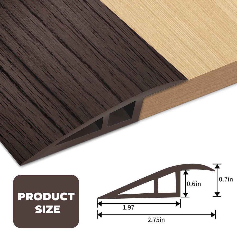 Vinyl Floor Transition Strip Door Threshold 36 inch, Thresholds 1/2'' ~ 3/5'', Transition Strips for Doorways, Vinyl-Threshold Ramps for Door/Floor (Black Walnut) 【Floor-Transition-Strip】It is easy to install and suitable for threshold lengths between 1/2 inch and 3/5 inch. Before installation, ensure that the surface is smooth and dust-free. 【 High Quality Materials 】Our vinyl threshold strip is made of PVC material, which is waterproof, moisture-proof, and durable. In addition, it is easy to clean and maintain. 【Strong Adhesion】Our rubber transition tape has good adhesion to the floor and tiles, and can bond well even in hot weather. 【Widely Used】Very suitable for helping push walkers and wheelchairs through the threshold. The threshold strip is very suitable as a transition between vinyl flooring and wooden or ceramic tile thresholds 【 Kind Reminder 】The product packaging may cause slight curling. After receiving the goods and opening them, reverse bending is used to restore their flatness. After installation, place the heavy object on the top and let it stand for 1 hour Shipping We offer FREE shipping on all orders! We ship within Three business days of payment, usually sooner. We use a selection of shipping services such as UPS, FedEx, USPS etc. We only ship to the lower 48 states, no APO/FPO addresses or PO Boxes allowed. Local pickups and combined shipping options are not provided at this time. Return You can return a product for up to 30 days from the date you purchased it. Any product you return must be in the same condition you received it and in the original packaging. Please keep the receipt. Payment We accept payment by any of the following methods: PayPal Please pay as soon as possible after winning an auction, as that will allow us to post your item to you sooner! Feedback Customer satisfaction is very important to us. If you have any problem with your order, please contact us and we will do our best to make you satisfied. Contact Us If you have any queries, please contact us via ebay. We usually respond within 24 hours on weekdays. Please visit our eBay store to check out other items for sale! Thank you for shopping at our store.
