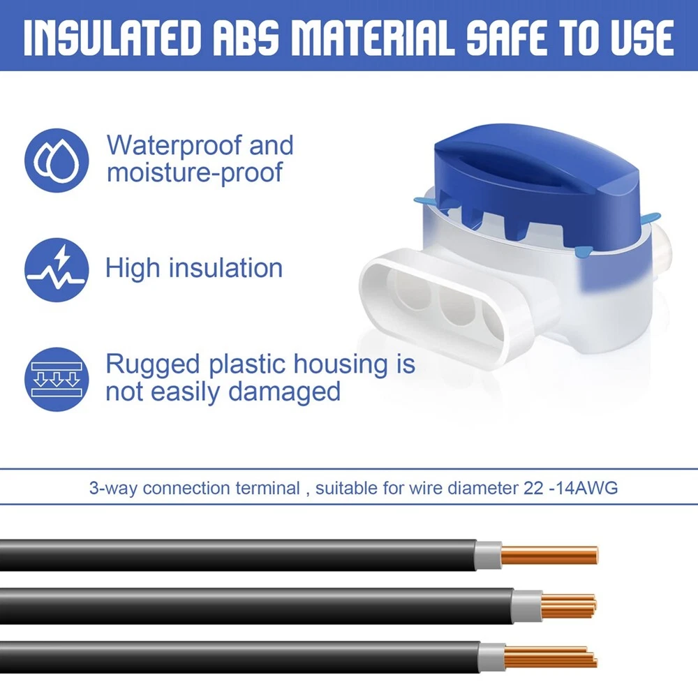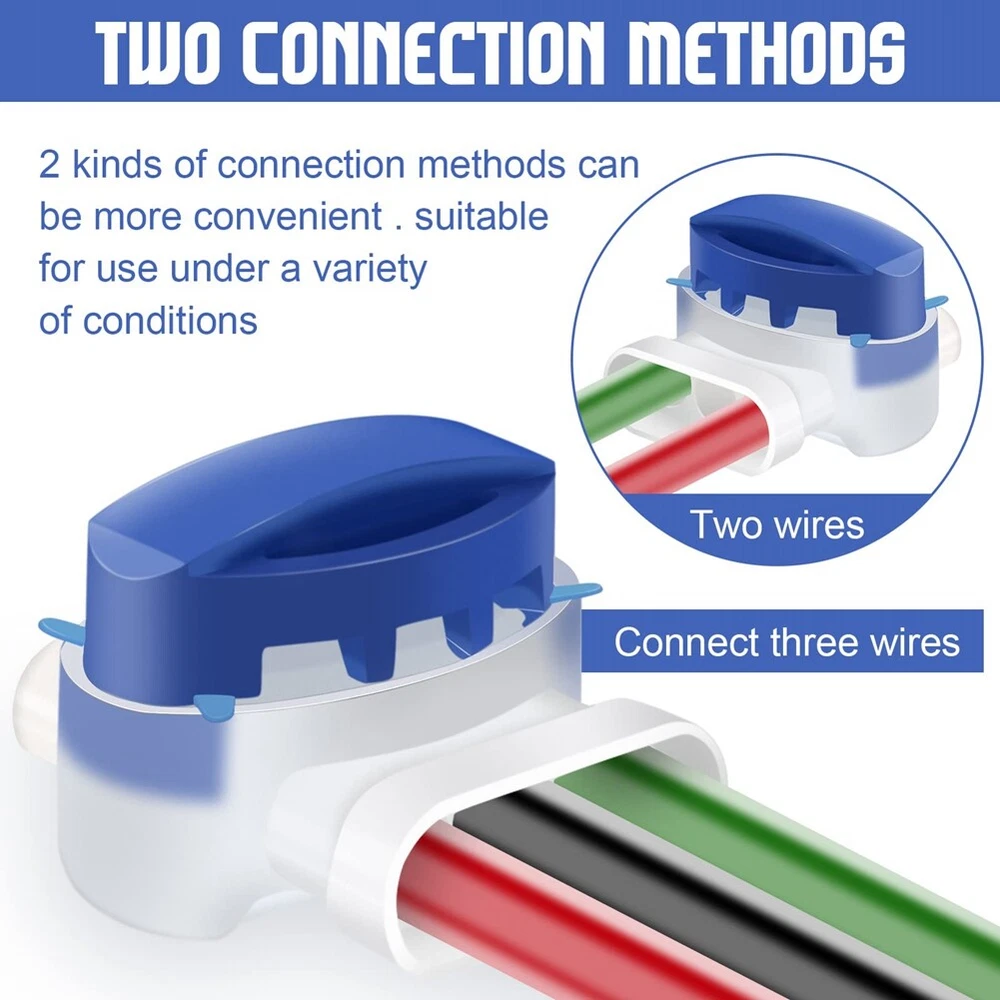 36PCS Cable Connectors for Robotic Lawnmowers, Connection Cable Wire3565 30pcs Professional Robot Mower Cord Connectors for Extending Robot Mower Boundary Line. With 6 pieces of snap lock, this clip is very stable and , unlike traditional charging station plugs, the convenient knife contact point saves the situation of peeling. The robot lawn mower wire connector is made of ABS insulation material, very strong, not easy to break, filled with gel, flame retardant, waterproof, moisture-proof, can form a closed environment, with higher , to a tight connection. Easy to use, no need to pull out the insulation of the wires, just insert the wire end directly into the wire hole of the pigtail connector, then press it with pliers to connect the 2 wires, save your time and reliable and long-lasting connect. The robot lawn mower cable connector kit is not only suitable for robot lawn mowers, but also for electric motors, electrical controllers, power supplies, household appliances, cable routing or other places, lighting and mechanical cable connectors. Suitable for outdoor and indoor use. Up to three wires can be connected. Color: Blue & Red Material: plastic Package Contents: 30pcs waterproof cable connector 6 x snap lock