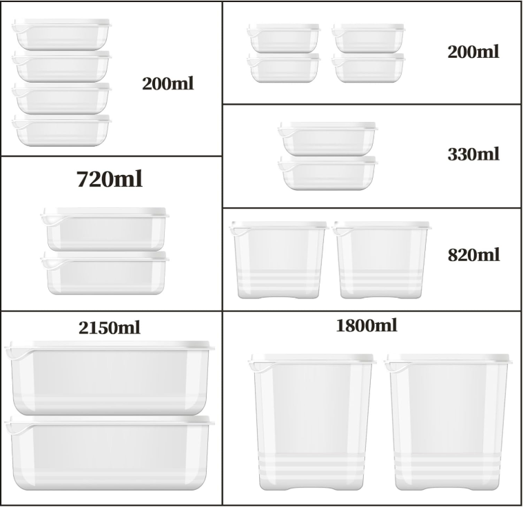 36-PCS, Plastic Deli Containers with Lids - Reusable, for Kitchen Storage This product is designed with a small sunken groove at the opening of the lid, which allows you to open the lid easily, eliminating the tedious step of buttoning the lid, convenient and fast! Sizes Our food storage boxes are designed with various sizes and capacities to meet your storage needs in different scenarios, with capacities of 200ml, 330ml, 720ml, 820ml, 1800ml and 2150ml. The food crisper with lid brings convenience while saving space, they are easy to carry, can be used to carry lunch in the office, school or travelling, microwave heating is also no problem, high temperature resistant, low temperature resistant, safe and secure. The crisper with lid is very easy to clean and resistant to grease and stains, which enhances the experience of food storage and doesn't give you the bad feeling of being difficult to clean. Our food preservation box, not only limited to food, vegetables, fruits, can be applied, containing soup is also not a problem, is your home travel, school office, food preservation and storage of no choice! SHIPPING: We offer FREE shipping on all orders! We ship within Three business days of payment, usually sooner. We use a selection of shipping services such as UPS, FedEx, USPS etc. We only ship to the lower 48 states, no APO/FPO addresses or PO Boxes allowed. Local pickups and combined shipping options are not provided at this time. PAYMENT: We accept payment by any of the following methods: PayPal Please pay as soon as possible after winning an auction, as that will allow us to post your item to you sooner! FEEDBACK: Customer satisfaction is very important to us. If you have any problem with your order, please contact us and we will do our best to make you satisfied. Thank you for shopping with us!