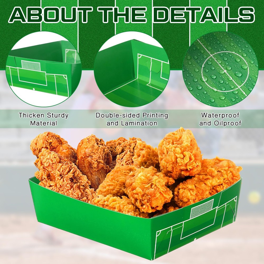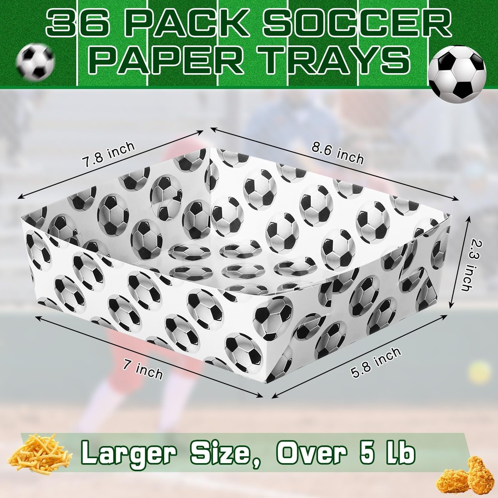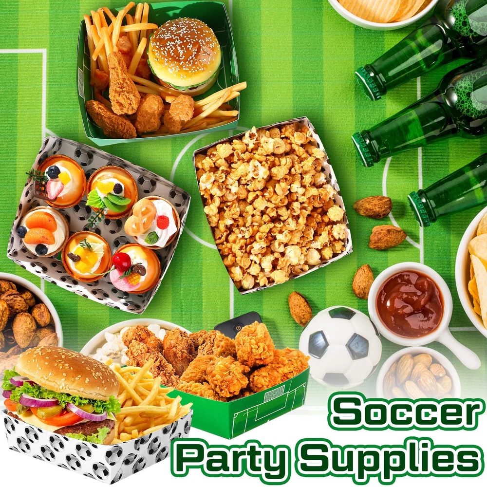 Teling 36 Pack Soccer Theme Party Supplies Large 5 lb Soccer Plates Trays Paper Food Boats Disposable Nacho Serving Snack Trays Dinner Plates for Sport Birthday Decorations Favors Teling 36 Pack Soccer Theme Party Supplies Large 5 lb Soccer Plates Trays Paper Food Boats Disposable Nacho Serving Snack Trays Dinner Plates for Sport Birthday Decorations Favors Free Shipping 24/7 Customer Service Premium Quality Rich Pack: you will get 36 packs of soccer ball plates in 2 patterns, sufficient quantities can meet your home or party food serving needs, you can also share these soccer party supplies with your friends or neighbors Sturdy and Safe Material: these soccer food boats are made of thicken paper cardboard, double sided printing and lamination, waterproof and oilproof, therefore you can enjoy the snacks without worrying about spillage or grease stains; Plus, disposable trays for food are microwave safe Larger Size: these soccer paper plates are measured 7.8 x 8.6 x 2.3 inches, just right for serving sandwiches, hot dogs, or chicken fingers, french fries, cheese sticks, or other fried food, fruits, spaghetti, salad and so on; Soccer ball nacho trays are single use trays that can be applied for hot and cold items Soccer Themed Party Decorations: these disposable soccer food trays are printed with soccer ball and football field pattern, and paired with bright colors, making the patterns more vivid and delicate, the charming food tray for party will be welcomed by most boys and girls, leaving a deep impression on guests Wide Range of Applications: soccer food boats disposable are ideal options for sport themed parties or gatherings, team celebration, soccer themed birthday party, carnivals, festivals, Children's Day, movie theaters, and indoor or outdoor events, BBQ, picnic and more; A fun soccer ball serving boat tray can hold an entire meal; Ideal for chips, popcorn, candy and much more Features: These soccer party plates are constructed with a clay coating on the inside that acts as a grease resistant barrier against oil spills and water, keeping the table and counters clean. These soccer snack trays are safe, Besides, it's microwave safe, so you can just put them into the microwave and have a hot dinner ready in just a minute by using these nacho boats. Specifications: Material: paper cardboard Color: as shown in the pictures Size: as shown in the pictures Package includes: 36 x Soccer paper tray soccer snack trays Notes: Manual measurement, please allow slight errors on size. The color may exist a slight difference due to different screen displays. Shipping Information We offer FREE shipping on all orders! We ship within three business days of payment, usually sooner. We use a selection of shipping services such as UPS, FedEx, USPS, etc. We only ship to the lower 48 states, no APO/FPO addresses or PO Boxes allowed. Return Policy You can return a product for up to 30 days from the date you purchased it. Any product you return must be in the same condition you received it and in the original packaging. Please keep the receipt. Feedback Customer satisfaction is our top priority. If you have any problem with your order, contact us immediately. We respond to all inquiries within 24 hours and will do our utmost to ensure you are fully satisfied with your shopping experience. Contact Us If you have any queries, please contact us via eBay. Our dedicated customer support team prioritizes your satisfaction and guarantees a response within 24 hours on weekdays. Discover Dobby's Deals! Thank you for choosing Dobby for your shopping needs. Explore more premium items in Dobby's Store today!
