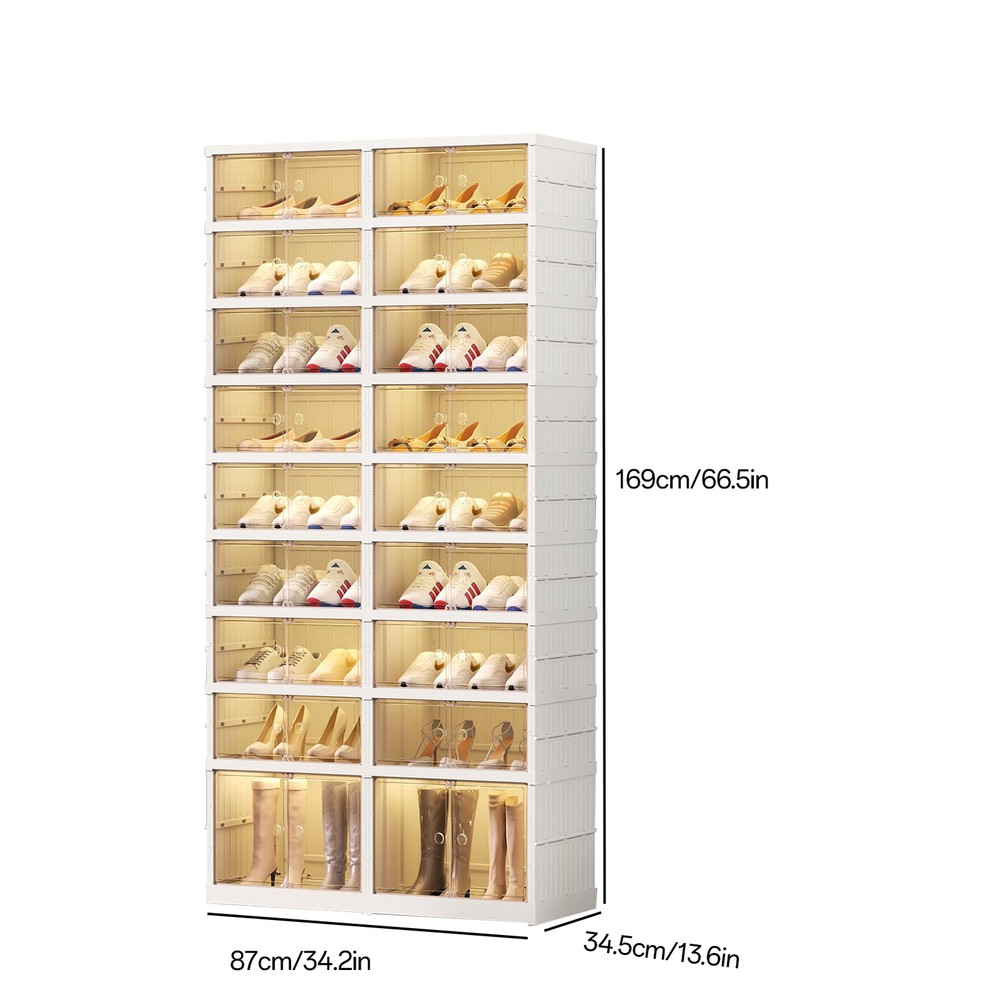 Store category Sign Up Now ! You may also like Product Description Bullet Points: Space-Saving Solution: The integrating structure design of this folding shoe cabinet allows for quick assembly and no need for any assembly tools. Its space-saving feature makes it perfect for any room. Complete Shoe Organization: Effortlessly organizes various footwear, featuring 9 tiers with 16 grids and 2 spacious compartments, accommodating up to 36 pairs, including tall boots. High-quality Material: Crafted from excellent PP+PET materials, this foldable shoe cabinet boasts a unique transparent design, ensuring your footwear is neatly stored, dust-free, and visible at a glance, with super suction for stability. Effortless Convenience: With wheels for easy relocation and a transparent door for quick shoe identification, this collapsible cabinet adds a touch of luxury to your home. Wide Applications: Keep your shoes easily accessible and neatly stored with this folding shoe cabinet. Widely used for many scenarios, it's perfect for hosting, bedroom, living room, garage, and more. Meet your different shoe storage needs with ease and keep your home tidy from every corner. Organize your shoes and store other items with ease using this Foldable Shoe Rack. The rack can easily be folded for storage and has 2 large grids that are heightened for storing long boots. This collapsible shoe cabinet also features a light transparent door and is perfect for various scenarios such as hosting, bedroom, living room, and garage. Keep your shoes and other items in order without taking up too much space with this versatile shoe rack. Specification. This product is designed with integrated structure, no assembly tools required, easy to install and space saving; 9 tiers (16 grids + 2 large grids), 2 large grids can store boots, the rest of the grids can be used to store all types of shoes; Super attractive shoe box, the door can be kept closed to minimize dust, with wheels, easy to move, transparent material, easy to find the needed shoes. Pack list. Folding Shoe Cabinet *1 Payment Delivery details Terms of sales About us Feedback & DSRs Payment Before you palce an order, please kindly make sure that you have a paypal account. We accept PAYPAL payment only. Payment should be completed within 2 days after auction closed, or unpaid dispute will be filed for an closing auction. An unpaid case will be filled after 4 days. Delivery details We ship to your eBay address. Each package will be shipped to US by UPS Regular Parcel with tracking number. Please check your shipping address carefully before checkout, it can't be changed if order completed. All items will be shipped within 1-2 business day upon receipt of payment.Orders placed on weekend will be shipped within 3 days. If you do not receive your item in 7-10 business days.please contact us immediately for further assistance. We will be responsible for any damages or losses incurred in the shipping process. About us We maintain high standards of excellence FIVE STAR and strive for 100% customer satisfaction! Positive Feedback is very important to us. We hope that you contact us immediately Before you give us neutral or negative feedback, so that we can satisfactorily address your concerns. We promise to offer the lowest price and high quality produce. Our working time: From Monday to Friday(9:30 am to 18:00pm), we don't working on holidays ,hope you can understand and know that , thank you. Please always talk to us via ebay Message. We appreciate your business and look forward to growing our e-Bay sales with satisfied customers. Feedback Contact us If you have any questions, please feel free to contact with us by ebay Message during our business hours ( 9:30a.m. to 5:30 p.m.), or email us through eBay, we will try our best to help you to resolve it. For any presale or after-sale questions,please do feel free to email us! Due to the time difference, each email will be replied within 1 working day,and weekend will be delayed a bit. Feedback