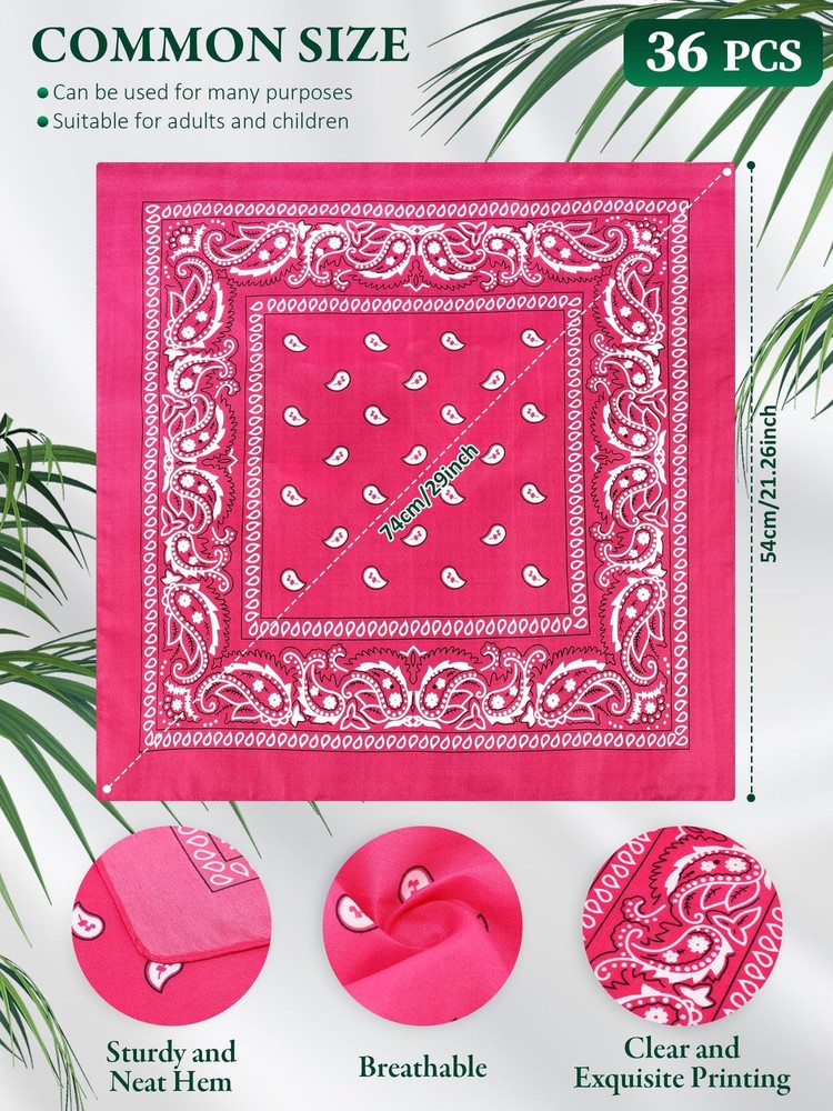 Features: Neon color square scarf is delicately designed to serve you, bringing a fluent use experience. You can send it to your loved people, giving them a surprise on birthdays or important festivals, to show your love. Neon color bandana is simple and reliable to use, enough to replace and share, light in weight and easy to carry, providing a lot of conveniences. Specifications: Material: polyester Color: neon color Size: one size/ about 21.26 x 21.26 inches/ 54 x 54 cm Package includes: 36 x Neon color bandana Notes: Manual measurement, please allow slight errors on size. The color may exist a slight difference due to different screen displays. Abundant to Choose: you will receive 36 pieces of paisley pattern bandanas, each of which measures about 21.26 x 21.26 inches/ 54 x 54 cm, suitable for pride parade or party use, enough for daily needs and replacement demands, sharing them with your family, partners, or people who are attending pride parade is also nice Reliable Material: vivid color bandana is made of quality polyester material, soft and comfortable not easy to deform or break, vibrant and colorfast, delicate in appearance, the serviceable material ensures long term use, bringing a fluent using experience Neon Color: scarf is designed with distinctive paisley patterns, 9 different neon colors can add a vital atmosphere, also making you more eye catching Broad Scope of Uses: head bandannas handkerchiefs are ideal for many usages, to serve as a bandana, head scarf, neck scarf, handkerchief, wristband, headband, hair wrap, tie, face mask, pet scarf and more, available for riding, yoga, exercising or other activities Party Supplies: the bandana is suitable for different occasions, like birthday parties, festivals, celebrations, showing your attitude and love; The classic and elegant color is easy to pair with different costumes and outfits