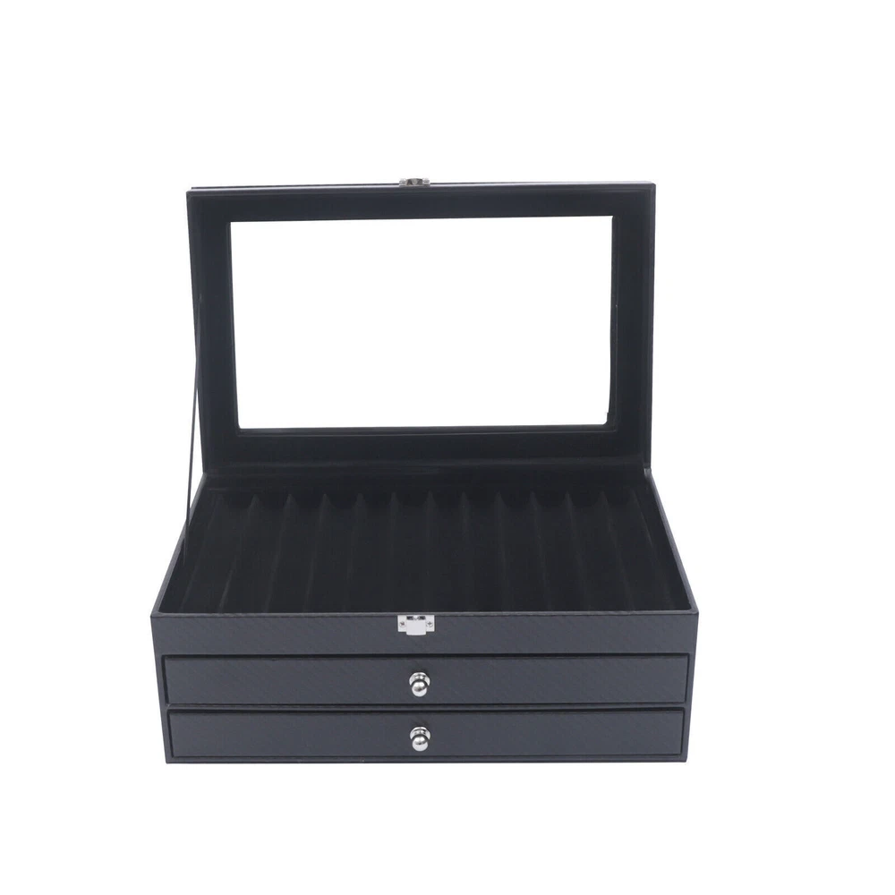 Specification Usage: Pen Special Feature: Portable Mounting Type: Free Standing Material: Charcoal Fiber, Density Boards, Glass, Fleece Color: Black Slot Quantity: 36 Gross Weight: 2.3kg/5.1lbs Net Weight: 2kg/4.4lbs Package Size: 35.5*24*17.5cm/14*9.4*6.9inch Product Size: 30*20*13.5cm/11.8*7.9*5.3inch Package Included 1* 36 Slots Fountain Pen Box πππ Welcome to Freetrade-shop πππ Description This is a beautiful 36-slots fountain pen box made of charcoal fiber and density boards. It not only is very durable but also has a large capacity to hold a lot of pens. Moreover, it is an ideal gift for friends and family. In addition to holding pens, it can also hold other small items. Key Features Large Capacity: This pen box has 3 layers with 36 slots. So it has enough storage space to hold most of your pen. Your desk will be very neat and tidy. Clear Glass Panel: The top of this pen box is designed with a clear glass panel. So you can see the items in the upper layer. It not only is convenient for you to quickly find the pen you want but also can display your beloved pen. Great Durability : The material of this pen box is the hard density board and wear-resistant charcoal fiber . So it has a long life span. In addition, the covering will look new even after a long time of usage. Dustproof Design: This pen box is designed with dustproof drawers and a box cover. So it is difficult for dust to enter the box. So the box can keep the items inside clean. Exquisite Appearance: This pen box has a simple and stylish design. The outer housing makes it look very elegant and high-end. It is a good decoration for your desk. Wonderful Gift: Most people can use this pen box. It is so beautiful and practical that it can be a wonderful gift for your family and friends . Space-saving: It will take up less space because of its small footprint of 11.8*7.9 inches and full use of vertical space. The unused space on the table is enough to place it. Guaranteed Customer Service: We aim to provide quality products and services. If you have any problems, please feel free to contact us. We will reply and solve the problem for you as soon as possible. Details Small Handle: The 2 drawers of the pen box are equipped with a beautiful metal handle to facilitate the user to open it. Metal Locking Latch: The top layer of this pen box is designed with a shiny metal latch. So you can lock the box after you put or take out the pen. Soft Fleece: The slots of the pen box are covered with soft fleece. This material is very soft and will not wear out the pen. On the contrary, it can protect your pen very well. Application It is suitable for study, bedroom, living room, office, school, classroom, studio, etc. Specification Usage: Pen Special Feature: Portable Mounting Type: Free Standing Material: Charcoal Fiber, Density Boards, Glass, Fleece Color: Black Slot Quantity: 36 Gross Weight: 2.3kg/5.1lbs Net Weight: 2kg/4.4lbs Package Size: 35.5*24*17.5cm/14*9.4*6.9inch Product Size: 30*20*13.5cm/11.8*7.9*5.3inch Package Included 1* 36 Slots Fountain Pen Box Notes Please allow the slight color difference caused by the shooting light and 1-3 cm error due to manual measurement, and make sure you do not mind before ordering. Payment Delivery details Terms of sales About us Contact us Payment We accept ebay payment γ Fees such as import duties, taxes are not included in the item price or shipping costs. These charges are the buyer's responsibility. Delivery details Shipping: 2-9 working days to: USA Terms of sales We maintain high standards of excellence and strive for hundred percent customer satisfaction. Feedback is very important to us. We hope that you contact us immediately before you give neutral or negative feedback, so that we can address your concerns. It is impossible to address issues if we do not know about them! About us Your satis faction is our ultimate goal. We work hard to earn your trust and future business. Our certified technicians have tested each item before shipping. The unit comes with 1 year limited warranty on all manufacturing defects. a) If you receive a defective item, you may return it or ask for a discount. Please contact us within 14 days after you receive the package. b) What you returned must be intact and in its original packaging as re? u. Customer is responsible for shipping costs of the returned item. c) We will cover the cost of shipping back t with the shipping rate indicated in the registration page. We will send you a new unit or refund the full payment you paid. Thank you. Contact us Business Hour Business Hour: Monday To Friday: 8:30 AM to 5:00 PM (Beijing China time) Due to time zones, our reply to your questions may not be immediately. But within above working time, we will reply your email within 24 hours. If it's non-workdays, please kindly be patient and wait till Monday. Please contact us with ebay message. Please feel free to contact us if you have any questions. Monday To Friday: 8:30 AM to 5:00 PM (Beijing China time) Due to time zones, our reply to your questions may not be immediately. But within above working time, we will reply your email within 24 hours. If it's non-workdays, please kindly be patient and wait till Monday. Please contact us with ebay message. Please feel free to contact us if you have any questions. *Features3*: Stable performance, Long service life 1.Feature*: Compact Design,Convenient Use 2.Feature*: Unique Appearance,Great Durability Material Charcoal Fiber, Density Boards, Glass, Fleece Vintage Yes Usage Pen Special Feature Portable Mounting Type Free Standing Slot Quantity 36 Gross Weight 2.3kg/5.1lbs Net Weight 2kg/4.4lbs Package Size 35.5*24*17.5cm/14*9.4*6.9inch Product Size 30*20*13.5cm/11.8*7.9*5.3inch UPC Does not apply