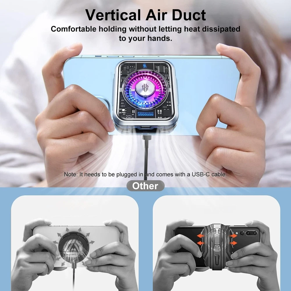 This phone cooler is a game-changer! The 36W cooling power and VC liquid tech keep my phone icy even during intense gaming. The RGB lights add a cool vibe, and the magnetic mount is super convenient. Cuts temps fast and prevents lag—totally worth it!
