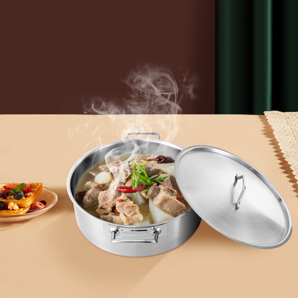 This stainless steel stockpot is a kitchen must-have! Perfect for soups, stews, and hot pot gatherings, it heats evenly and cleans up effortlessly. The sturdy lid locks in flavor, and its versatile design works on all stovetops. Durable, spacious, and stylish—it makes cooking for a crowd a breeze. Love how it handles everything from frying to slow simmering without a fuss!