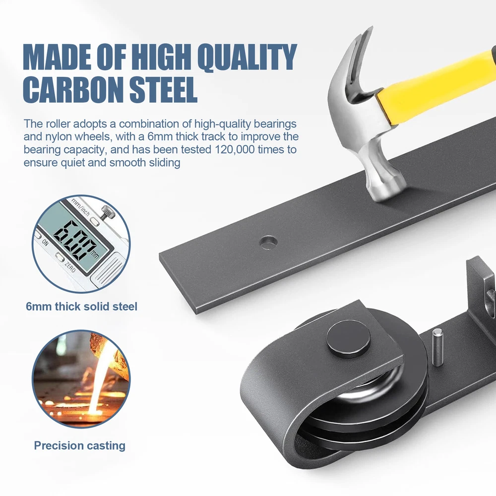 Store category Sign Up Now ! You may also like Product Description Bullet Points: Application Safety: Seamlessly integrating with your home's aesthetic, our folding door kits offer a safe design that's ideal for children, ensuring a bestly wide range of applications while conserving your living space. High-Grade Quality: Created using carbon steel, our Barn Door Hardware features high-quality nylon wheels and rollers that are wear-resistant, delivering outstanding durability and strength when it matters most. Hassle-Free Installation: Our barn door hardware provides a hassle-free installation process with detailed instructions and intuitive components. The bi-fold sliding design saves space while providing a total width solution, giving you more room and time for other things. Versatile Use: Make your barn door unique with this complete hardware set, suitable for 35mm-45mm door thickness. All accessories included for different needs, door not included. Perfect fit ensured. Multi Applications: Our Barn Door Hardware is built with a strong load-bearing capacity, making it perfect for various living spaces such as living rooms, study rooms, and restaurants. With its smooth and quiet slide, it ensures reliable performance for heavy use in homes and other commercial applications. Transform any doorway into a beautiful focal point with our Barndoor Hardware! Safe for children with durable, wear-resistant materials. Total width adjustable to fit your preferences or living situation. Upgrade your space with this stylish and functional addition. Specification: Name: Barn Door Hardware Colour: Black Material: Carbon steel Track Size: about 36 inches/91cm Track Splicing Method: 3 pieces Scope of Application: Door panel thickness 0.5-50mm Packing List: 3* Track 2* Scroll Wheel 2* Roller Swivel Stand 1* Roller Holder 3* Spacers 3* Hinge 1* Floor Rail 1* Sealing Strip 1* Screw Pack 1* Instruction Manual 3* Pipe Clamp 35mm 4* Wood Screws M8*90 4* External Hexagonal Machine Wire M10*60 4* Cover M10 Notes: 1. Due to the different monitor and light effects, the actual color of the item might be slightly different from the color which is showed in the pictures. 2. Please forgive a slight measuring deviation due to manual measurement. 3. Door is Not Included. Payment Delivery details Terms of sales About us Feedback & DSRs Payment Before you palce an order, please kindly make sure that you have a paypal account. We accept PAYPAL payment only. Payment should be completed within 2 days after auction closed, or unpaid dispute will be filed for an closing auction. An unpaid case will be filled after 4 days. Delivery details We ship to your eBay address. Each package will be shipped to US by UPS Regular Parcel with tracking number. Please check your shipping address carefully before checkout, it can't be changed if order completed. All items will be shipped within 1-2 business day upon receipt of payment.Orders placed on weekend will be shipped within 3 days. If you do not receive your item in 7-10 business days.please contact us immediately for further assistance. We will be responsible for any damages or losses incurred in the shipping process. About us We maintain high standards of excellence FIVE STAR and strive for 100% customer satisfaction! Positive Feedback is very important to us. We hope that you contact us immediately Before you give us neutral or negative feedback, so that we can satisfactorily address your concerns. We promise to offer the lowest price and high quality produce. Our working time: From Monday to Friday(9:30 am to 18:00pm), we don't working on holidays ,hope you can understand and know that , thank you. Please always talk to us via ebay Message. We appreciate your business and look forward to growing our e-Bay sales with satisfied customers. Feedback Contact us If you have any questions, please feel free to contact with us by ebay Message during our business hours ( 9:30a.m. to 5:30 p.m.), or email us through eBay, we will try our best to help you to resolve it. For any presale or after-sale questions,please do feel free to email us! Due to the time difference, each email will be replied within 1 working day,and weekend will be delayed a bit. Feedback