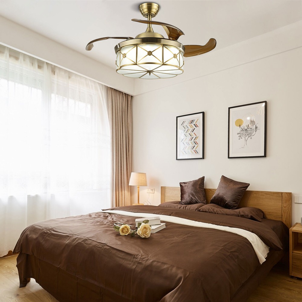 Light Source: LED lighting board (Included) Shade Material:Copper glass Blade Material: ABS ❤ invisible fan chandelier: Fan and chandelier combined into one with remote control, automatic telescopic fan blade, LED lamp beads ❤ Ceiling fan with remote: LED lights have 3 color changes (White-Warm-Yellow), Fan has 3 speed settings (Low-Mid-High). All these functions can be easily controlled by remote ❤ Fan Light Chandelier: 36 inches when the fan is extended, Includes two lower bars, one for 3.97 inches and the other for 7.87 inches, you can choose one to install ❤ Bedroom Ceiling Fans Material: metal body + Copper glass lamp cover + ABS retractable blades + pure copper motor(providing powerful air flow, quiet and durable. With vents, it can reduce the internal temperature of the main unit 💚💚💚 Welcome to Freetrade-shop 💚💚💚 Light Source: LED lighting board (Included) Shade Material:Copper glass Blade Material: ABS ❤ invisible fan chandelier: Fan and chandelier combined into one with remote control, automatic telescopic fan blade, LED lamp beads ❤ Ceiling fan with remote: LED lights have 3 color changes (White-Warm-Yellow), Fan has 3 speed settings (Low-Mid-High). All these functions can be easily controlled by remote ❤ Fan Light Chandelier: 36 inches when the fan is extended, Includes two lower bars, one for 3.97 inches and the other for 7.87 inches, you can choose one to install ❤ Bedroom Ceiling Fans Material: metal body + Copper glass lamp cover + ABS retractable blades + pure copper motor(providing powerful air flow, quiet and durable. With vents, it can reduce the internal temperature of the main unit and extend the life of the motor.) Ceiling Fan with LED Light: Replaceable LED light will last a longtime and save you the most on your energy bills. Ceiling Fan with Remote Control: Control the light and fan speed separately for ease and convenience. Color temperature: CCT 3 color changes(3 light cycles) Light source type: LED(Light Kit Included) Control: Remote Control Included Dimensions: 36 Inch, 4 Retractable Blades Light Wattage: 36W Motor Wattage: 56W Speed: 3 Voltage: 110 -120 Volts Installation Instructions: Ceiling Chandelier Suitable for Flat Roof Concrete Ceiling House, for Gypsum Board and Wood Ceiling, You Need to Buy a Remodeling Bracket; Identify and Connect Electrical Wires; Ceiling height is greater than 110", Lift 110 Pounds. What you get: Retractable ceiling fan x 1 Screws sets x 1 Down rods x 2 (10CM & 20CM) Remote control x 1 Instruction Manual x 1 Payment Delivery details Terms of sales About us Contact us Payment We accept ebay payment 。 Fees such as import duties, taxes are not included in the item price or shipping costs. These charges are the buyer's responsibility. Delivery details Shipping: 2-9 working days to: USA Terms of sales We maintain high standards of excellence and strive for hundred percent customer satisfaction. Feedback is very important to us. We hope that you contact us immediately before you give neutral or negative feedback, so that we can address your concerns. It is impossible to address issues if we do not know about them! About us Your satis faction is our ultimate goal. We work hard to earn your trust and future business. Our certified technicians have tested each item before shipping. The unit comes with 1 year limited warranty on all manufacturing defects. a) If you receive a defective item, you may return it or ask for a discount. Please contact us within 14 days after you receive the package. b) What you returned must be intact and in its original packaging as re? u. Customer is responsible for shipping costs of the returned item. c) We will cover the cost of shipping back t with the shipping rate indicated in the registration page. We will send you a new unit or refund the full payment you paid. Thank you. Contact us Business Hour Business Hour: Monday To Friday: 8:30 AM to 5:00 PM (Beijing China time) Due to time zones, our reply to your questions may not be immediately. But within above working time, we will reply your email within 24 hours. If it's non-workdays, please kindly be patient and wait till Monday. Please contact us with ebay message. Please feel free to contact us if you have any questions. Monday To Friday: 8:30 AM to 5:00 PM (Beijing China time) Due to time zones, our reply to your questions may not be immediately. But within above working time, we will reply your email within 24 hours. If it's non-workdays, please kindly be patient and wait till Monday. Please contact us with ebay message. Please feel free to contact us if you have any questions. Feature 2 Fast Shipping * Feature * Stable characteristic,High reliability Country/Region of Manufacture Unknown Features Long service life, Fast shipping, stable performance,Durable Warranty Three years Highlights High quality W/ warranty!, Long service life, Creative Design,Durable Material,Beautiful Appearance, stable performance,Durable Design modern Blade Color as pics show Fan Width / Number of Blades 4 Number of Speeds 3 Number of Settings 1 Light Color / Power Source / Color as pics show MPN DOES NOT APPLY Department Adults Control Style remote Sensor Type / Cord Color / Manufacturer / LED String/Strip Type / Finish / Lighting Technology LED Installation Area Indoor Brand Unbranded Room Bedroom, Dining Room, Home Office/Study, Living Room, Sunroom, Hallway, Bar Material ABS Voltage AC 110 -120 Volts Shade Shape Round Style Modern Light Wattage 36W Motor Wattage 56W Speed 3 Type Ceiling Light Dimensions 36Inch, 4 Retractable Blades Light source type LED(Light Kit Included) Color Temperature CCT 3 color changes(3 light cycles) Manufacturer Warranty 2 Years