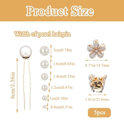 5-Piece Vintage Pearl Bobby Pins, Alloy Hair Clips for Women