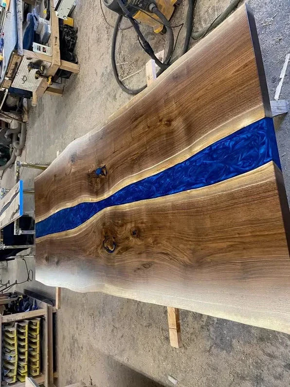 Table Tops Size: 36"x24" Inches Can be Customize ,Please message your desired shape /Epoxy color/ Size. This is a Epoxy Resin Gaming or Trading Desk made with Walnut which is beautified with colored pigment . The resin river table is brand new and the contemporary design would be a unique addition to your home. With its perfect combination of style and function this piece of furniture is sure to be the star of any room. This modern table will also make for an awesome gift for your friends or relatives. Each one is created with high quality resin and individually handcrafted. Resin is a highly reflective medium which will catch anyone’s eye walking into the room. All tables are finished to the highest standard. The epoxy resin is very strong & durable with specialised UV resistance. The tables are delivered flat packed. Simply bolt the legs. This listing is for a custom Live edge Wooden Table. We have access to thousands of live edge slabs of domestic and exotic species that are imported from around the globe. We use only the highest quality of hardwoods and materials in our work, and believe only in perfection. Kindly Note: As raw wood is used in its natural form and shape to make the table, the table shown in the photos has already been purchased so actual product may vary from the picture shown. Please contact me if you have any kind of query. Kindly Note: Any accessories/Chairs and legs shown in picture NOT included in given prices. if you want legs then you are to pay spare money. Please contact me if you have any kind of query. Kindly Note: Please contact me if you have any kind of query.Buyers are liable for any customs and import taxes that may apply. I'm not liable for delays due to customs. Buyers are liable for any customs and import taxes that may apply. I'm not liable for delays due to customs.