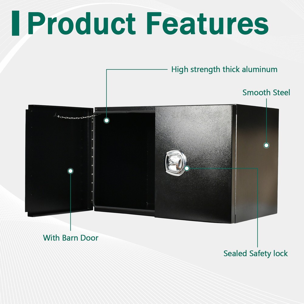 UPC: Does not apply Fitment: For Trucks, RV, ATV, Garage storage, Trailer, Job site, Flatbed Placement on Vehicle: Lower Color: Black Overall Dimensions: 36"(L) x 24"(W) x 24"(H) Thickness: 1.5mm Type: Truck Tool Box Manufacturer Part Number: Does Not Apply Position: Underbody gtin13: Does not apply Materials: Steel Brand: fastracingo