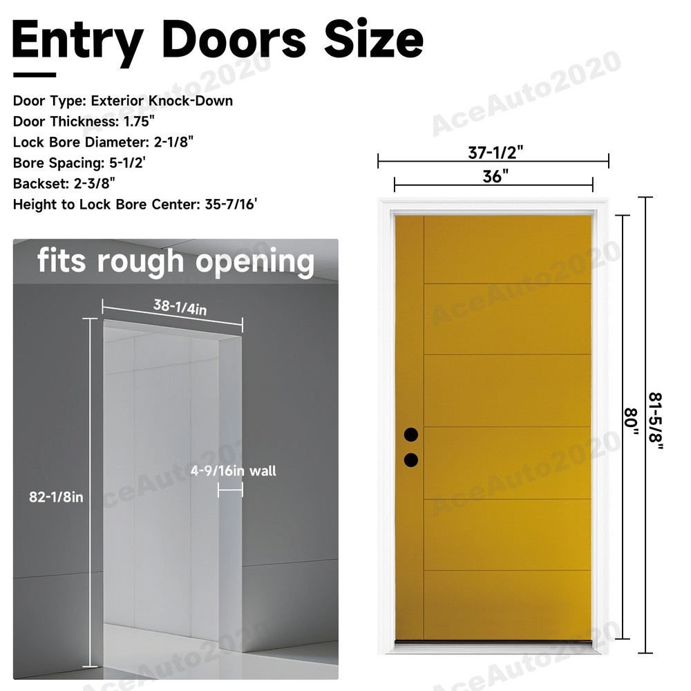 We have left-hand opening and right-hand opening doors.if you need another one,please contect us. Product Information Item Code K016-36YER Product Type Combo Item Product Name 36 x 80'' Contemporary U-groove Flush Panel Fiberglass Entry Door, R ight H and Inswing,Vinyl Frame in US, 4 -9/16 jamb , Knock-Down Design, Brickmould Included , Yellow Flash Brush Finish Place of Origin China Main Color Yellow Brush Finished Main Material Fiberglass Filler Fiberglass Product Style American Design,Classic,European,Luxury,Modern Use Case Garden & Outdoor Product Features High-Quality Matte Finished Fiberglass Door: The FRAMEWELL fiberglass door features a sleek matte -finished surface, complemented by high-definition panel embossments. This versatile door can be easily painted to match any residential decor, offering customization options for various applications. Durable, Low-Maintenance Design: Constructed with LVL (Laminated Veneer Lumber) stiles, this door is designed for longevity and superior strength. The water-resistant and dent-resistant slab and frame are built to withstand high traffic and daily wear, making it ideal for both residential and commercial environments. --------------------------------------------------------------------------------------------------- Do Read before You Buy : Refund& Return -Returns are accepted within a certain period. Any problems, please feel free to contact us by eBay message first, let's figure problems out together, your email will be replied within 1 business day. -We provide a free return service, but return shipping costs will be on you in the following circumstances. 1. Changed your mind or do not need/want the item or other personal reasons. 2.Items may slightly differ from photos in terms of color and lighting differences & on different monitor’s display. 3. Manual measurement has been used, there may be some reasonable error range. 4. Choosing the wrong size , type or color causes unfitting problem. Or didn't read specifications and descriptions, causes real item is different with own imagination or expectation. 5. The buyer did not know how to install or use the item 6.Find a better price elsewhere. -Returns for free/free replacement/free parts only happen in the case of product issues/arriving broken/wrong item or missing parts. -For quality issues ,defective photos must be attached to messages/when returning. Shipment Warning : if we ship out the item and the buyer wants to cancel the order or change the address, buyer need to pay possible shipping cost. Please cancel the order or change the address before we ship out. After sales Service -we are responsible for accessories missing. Please contact us first, and attach a photo of what you've received. -we are responsible for all losses caused by product quality issues. Resend or Refund, please also attach defective photos. Feedback We do appreciate having such an opportunity to solve the problem before leaving feedback. Cause negative feedback solves NO problem, but we DO ! Hope you have a good time shopping in our store! We are honored !