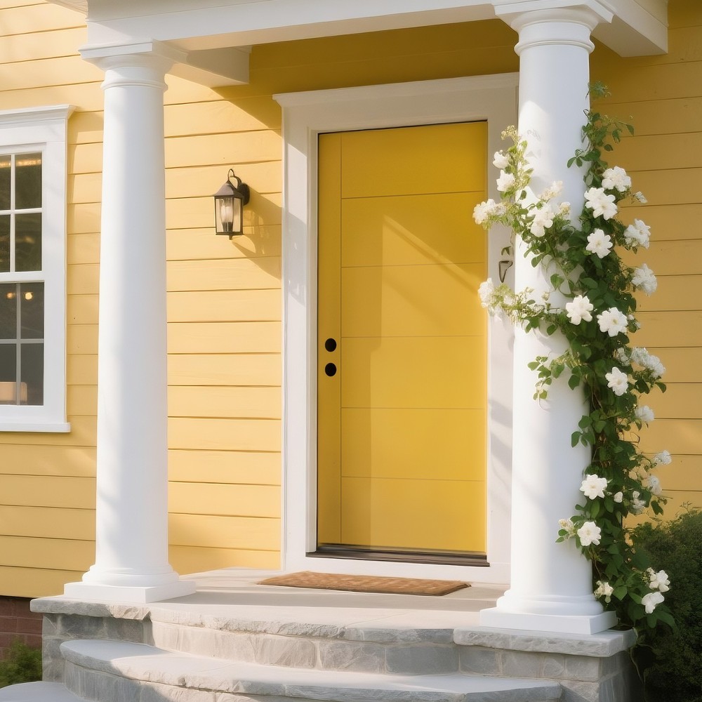 $ 685.883 Inch Yellow Cottage with Charming Brown Door