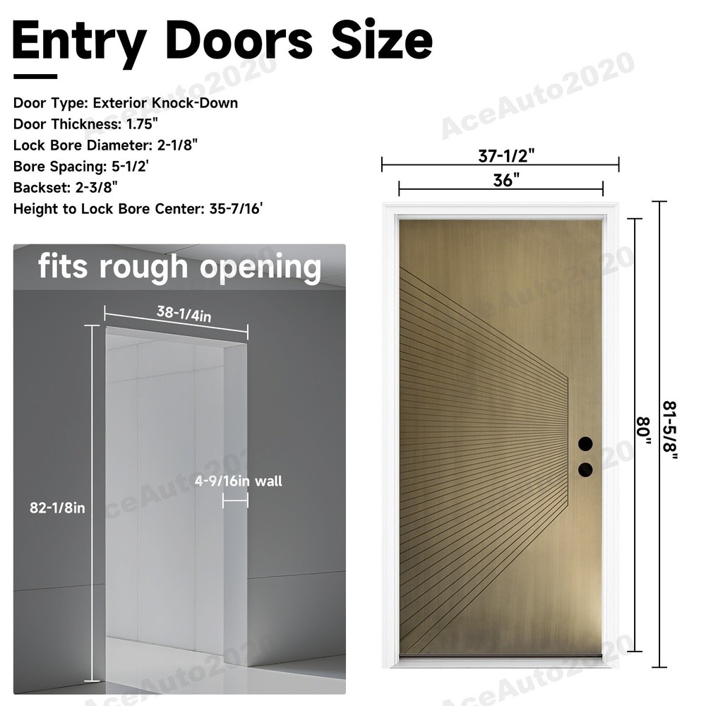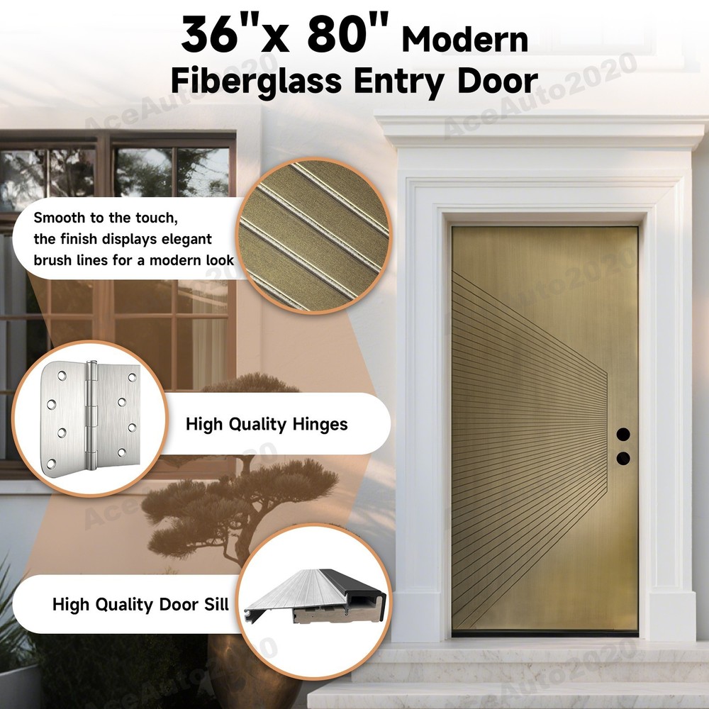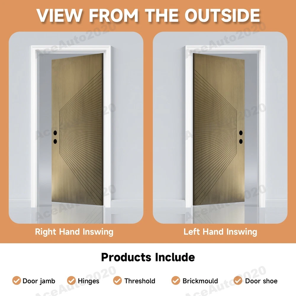 We have left-hand opening and right-hand opening doors.if you need another one,please contect us. Product Information Item Code K019-36AEL Product Type Combo Item Product Name 36" x 80" Fiberglass Entrance Door with Contemporary V-Groove Flush Panel - Antique Brass Brush Finish, Left Hand Inswing, Low Maintenance, Vinyl Frame , Knock-Down Design , 4-9/16 Door Jamb Place of Origin China Main Color Antique Bronze Main Material Fiberglass Filler Fiberglass Product Style American Design,Classic,European,Luxury,Modern Use Case Garden & Outdoor Product Features : Door Specification : 36 in. x 80 in. Smooth with metallic texture entry door, 4-9/16 in. Primed jamb with brickmould, Left-hand inswing, fits rough opening of 38-1/4 in. x 82-1/8 in. Door is not for commercial use. Low-Maintenance Design : LVL Laminated Veneer Lumber Stiles. Durable ,Water-Resistant and Dent-Resistant slab and frame to withstand the rigors of everyday use. Antique Bronze Fiberglass Door : With through color process technology, the antique bronze tone is infused through the smooth metallic texture fiberglass skin, creating a metallic, luxurious look with lasting durability. KHSHOW Door offers peace of mind that your door will remain beautiful for years to come. Important Note❗❗❗ [Sill Finish]The threshold is pre-packaged and comes in either Bronze (black) or Mill (silver) finish. Color selection is not available, but both finishes are durable and visually compatible with the door set. --------------------------------------------------------------------------------------------------- Do Read before You Buy : Refund& Return -Returns are accepted within a certain period. Any problems, please feel free to contact us by eBay message first, let's figure problems out together, your email will be replied within 1 business day. -We provide a free return service, but return shipping costs will be on you in the following circumstances. 1. Changed your mind or do not need/want the item or other personal reasons. 2.Items may slightly differ from photos in terms of color and lighting differences & on different monitor’s display. 3. Manual measurement has been used, there may be some reasonable error range. 4. Choosing the wrong size , type or color causes unfitting problem. Or didn't read specifications and descriptions, causes real item is different with own imagination or expectation. 5. The buyer did not know how to install or use the item 6.Find a better price elsewhere. -Returns for free/free replacement/free parts only happen in the case of product issues/arriving broken/wrong item or missing parts. -For quality issues ,defective photos must be attached to messages/when returning. Shipment Warning : if we ship out the item and the buyer wants to cancel the order or change the address, buyer need to pay possible shipping cost. Please cancel the order or change the address before we ship out. After sales Service -we are responsible for accessories missing. Please contact us first, and attach a photo of what you've received. -we are responsible for all losses caused by product quality issues. Resend or Refund, please also attach defective photos. Feedback We do appreciate having such an opportunity to solve the problem before leaving feedback. Cause negative feedback solves NO problem, but we DO ! Hope you have a good time shopping in our store! We are honored !