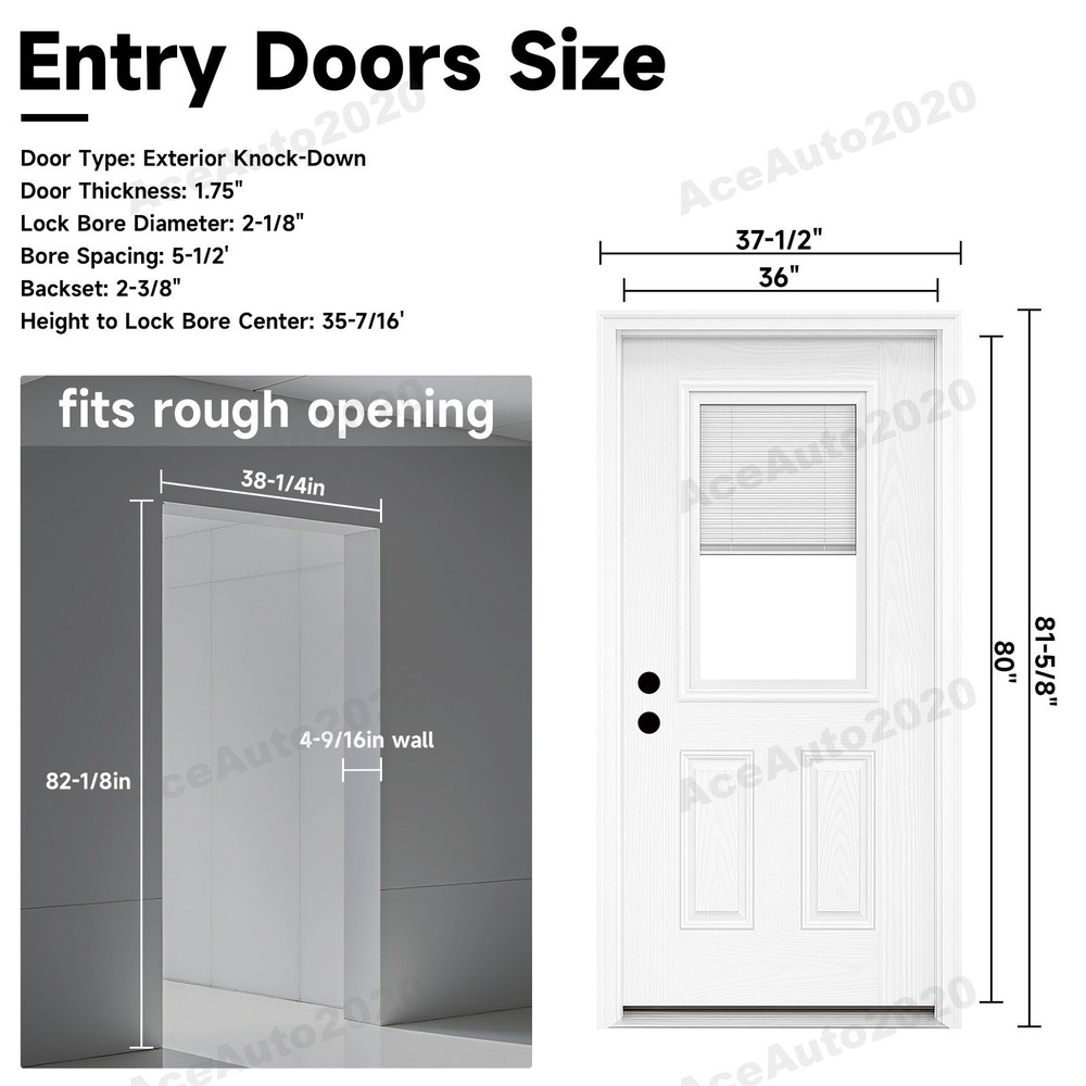 We have left-hand opening and right-hand opening doors.if you need another one,please contect us. Product Information Item Code K017-36BWR Product Type Combo Item Product Name 36x80" Right-Hand Inswing Primed Oak Grain Fiberglass Front Entry Door with Classical Mini Blind Glass and Brickmould , Vinyl Frame, 4-9/16" Jamb – Knockdown Easy Installation Place of Origin China Main Color Oak Primed Main Material Fiberglass Filler Fiberglass Product Style American Design,Classic,European,Luxury,Modern Use Case Garden & Outdoor Product Features : ² Perfect Fit & Classic Size: Sized at 36" x 80", this right-hand inswing door seamlessly fits standard door frames, ideal for entryways, porches, or main entrances. Its timeless dimensions blend functionality with elegance, enhancing your home’s curb appeal. ² Effortless Installation: Designed as a knock-down door, it breaks down into manageable sections for easy transportation and assembly. No complex tools required—simplify your DIY project or professional installation process. ² Durable Fiberglass Build: Crafted from high-quality fiberglass, this door resists warping, rotting, and cracking, ensuring long-term performance. Its low-maintenance nature makes it perfect for various climates, saving you time and money on upkeep. ² Stunning Primed Oak Grain Design: The realistic oak grain texture adds a touch of sophistication to your home’s exterior. Pre-primed and ready for painting, customize the door to match your decor style, from rustic to modern. ² Enhanced Privacy with Blind Glass: The built-in blind glass offers privacy without sacrificing natural light, allowing you to control visibility from the inside. Enjoy a secure and stylish entryway that balances functionality and aesthetic appeal. --------------------------------------------------------------------------------------------------- Do Read before You Buy : Refund& Return -Returns are accepted within a certain period. Any problems, please feel free to contact us by eBay message first, let's figure problems out together, your email will be replied within 1 business day. -We provide a free return service, but return shipping costs will be on you in the following circumstances. 1. Changed your mind or do not need/want the item or other personal reasons. 2.Items may slightly differ from photos in terms of color and lighting differences & on different monitor’s display. 3. Manual measurement has been used, there may be some reasonable error range. 4. Choosing the wrong size , type or color causes unfitting problem. Or didn't read specifications and descriptions, causes real item is different with own imagination or expectation. 5. The buyer did not know how to install or use the item 6.Find a better price elsewhere. -Returns for free/free replacement/free parts only happen in the case of product issues/arriving broken/wrong item or missing parts. -For quality issues ,defective photos must be attached to messages/when returning. Shipment Warning : if we ship out the item and the buyer wants to cancel the order or change the address, buyer need to pay possible shipping cost. Please cancel the order or change the address before we ship out. After sales Service -we are responsible for accessories missing. Please contact us first, and attach a photo of what you've received. -we are responsible for all losses caused by product quality issues. Resend or Refund, please also attach defective photos. Feedback We do appreciate having such an opportunity to solve the problem before leaving feedback. Cause negative feedback solves NO problem, but we DO ! Hope you have a good time shopping in our store! We are honored !