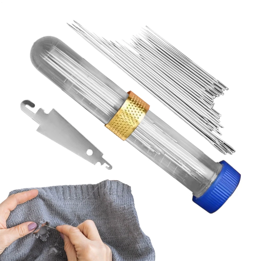 200pieces Large Eye Sewing Needles, 2.8", Blunt Needles, Blue